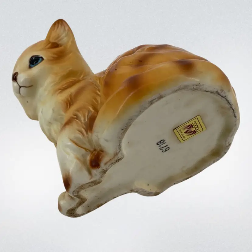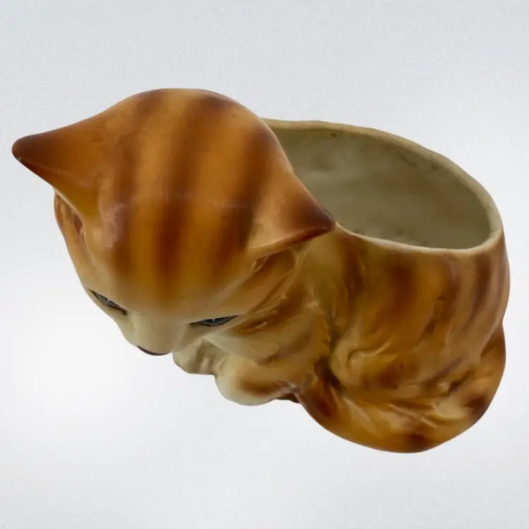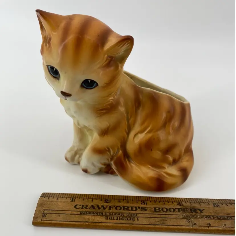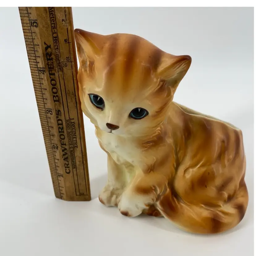 Vintage Napco Cat Planter Yellow Tabby Blue Eyed Kitten Retro Original Label