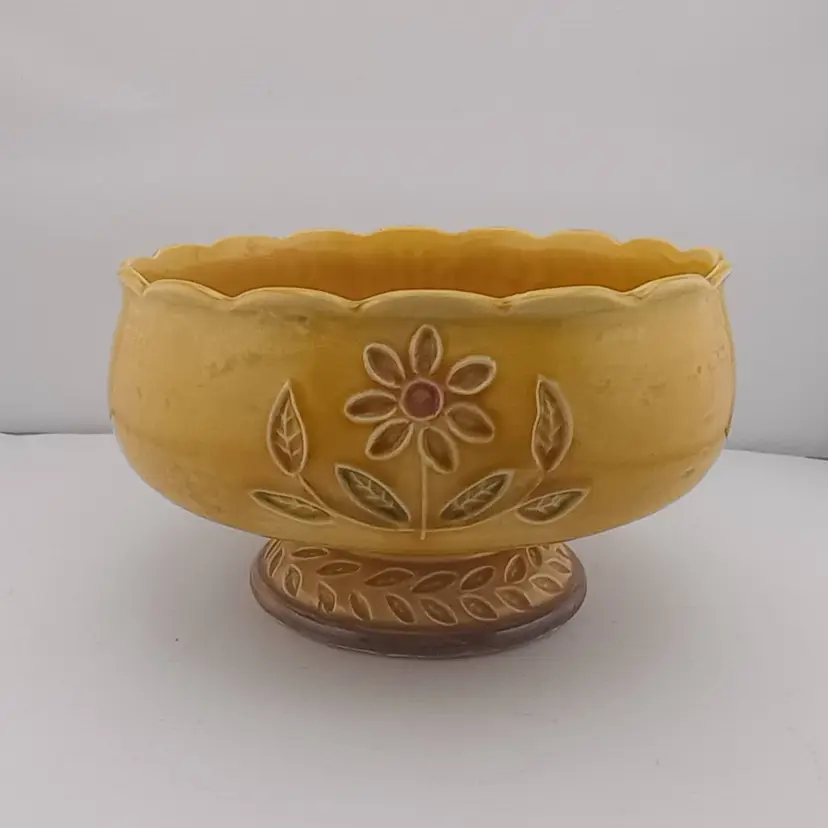This is a fantastic vintage ceramic planter (or bowl) from Napco. It has wonderful incised floral design in vibrant colors. It's in excellent condition with no chips or cracks.