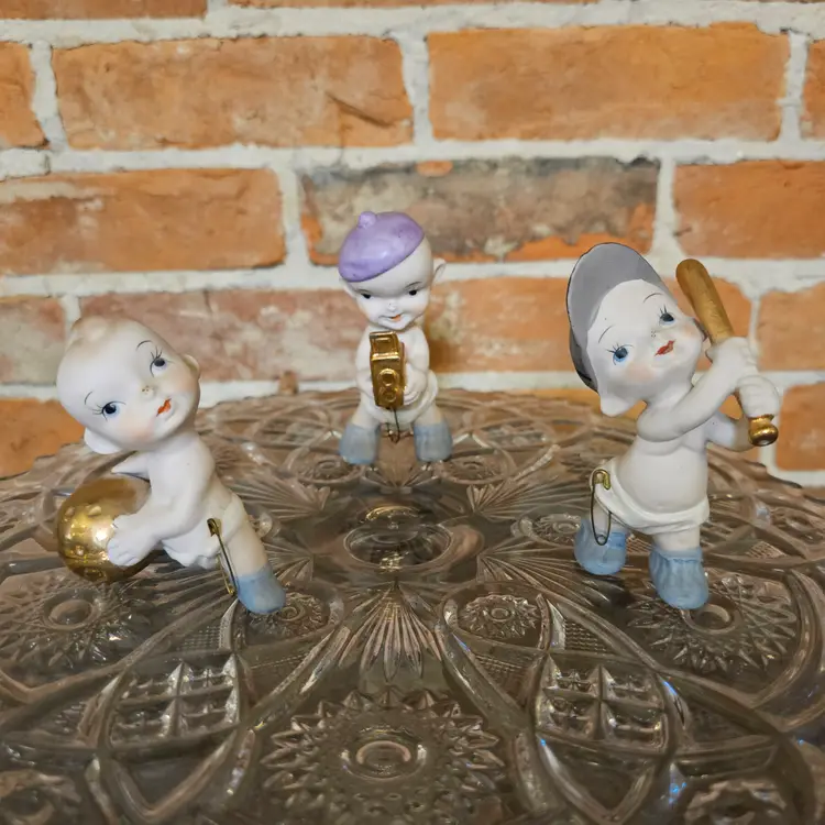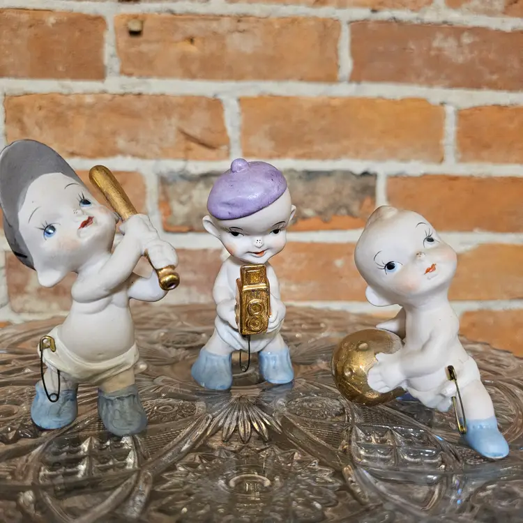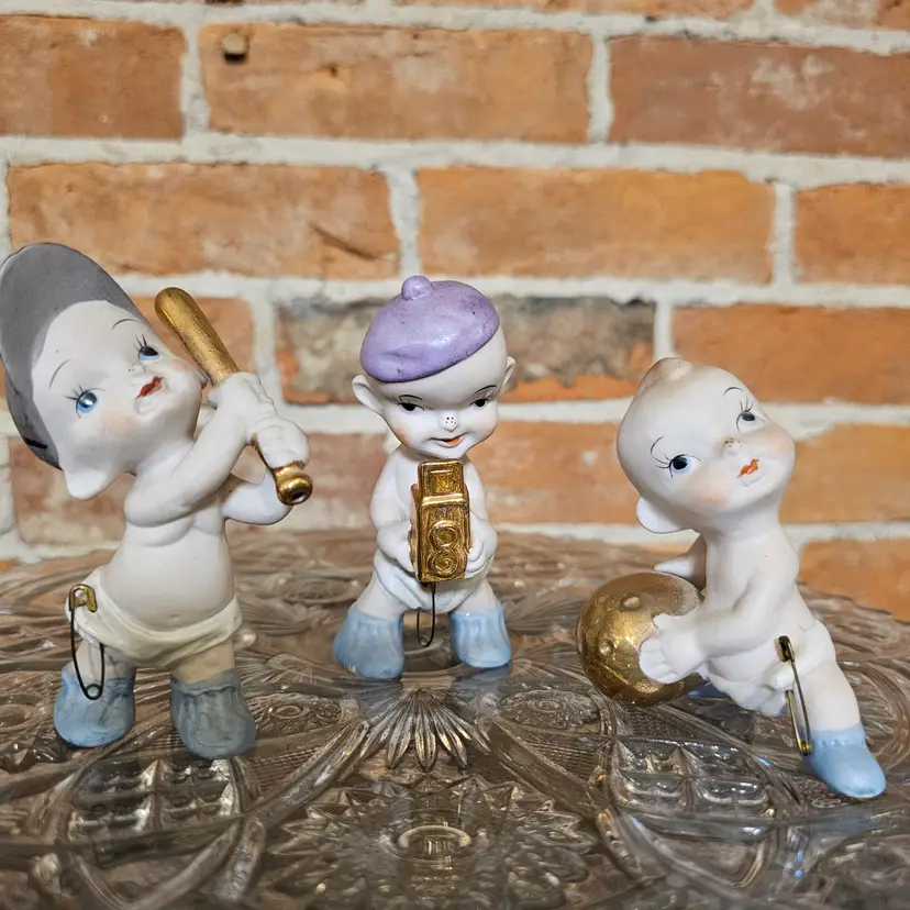 PLEASE READ: REPAIR ON THE PHOTOGRAPHER FOOT. You will get all 3 pieces in this lot. The babies still have their original safety pin diapers on. Made in Japan.