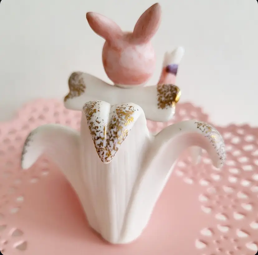 Hard to find vintage Easter Napco Bunny Pixie for April/Lily Flower. Numbered CS948. Napco foil sticker present. No chips or repairs. Scroll for details. Measures 3 in x 2.25 in. If you are wanting to collect the series there are 12, one for each month!