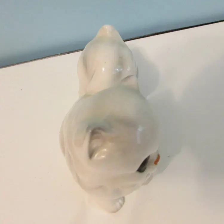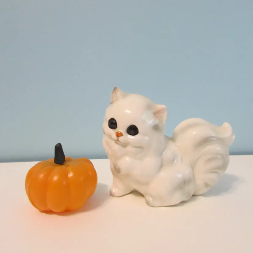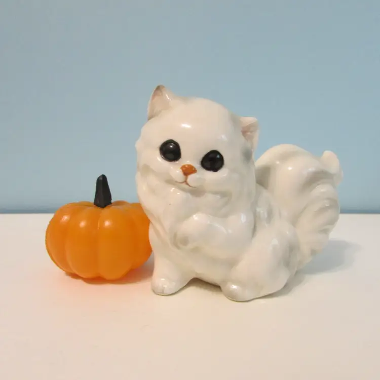 This adorable figure is in good condition, we added a plastic pumpkin since we thought this kitty would be good for Halloween. It is about 2 1/2" tall. This is shipped from a smoke free home. Thanks for looking!