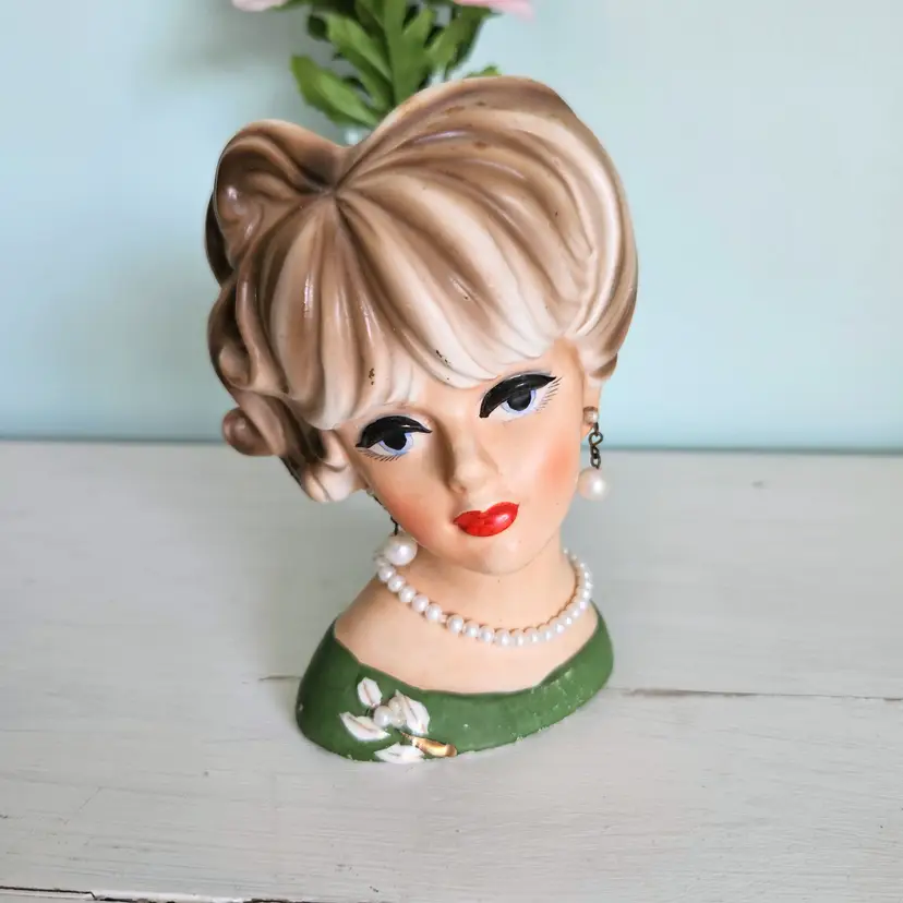 Napcoware lady head vase C7474. This gorgeous lady comes with pearls and necklace!