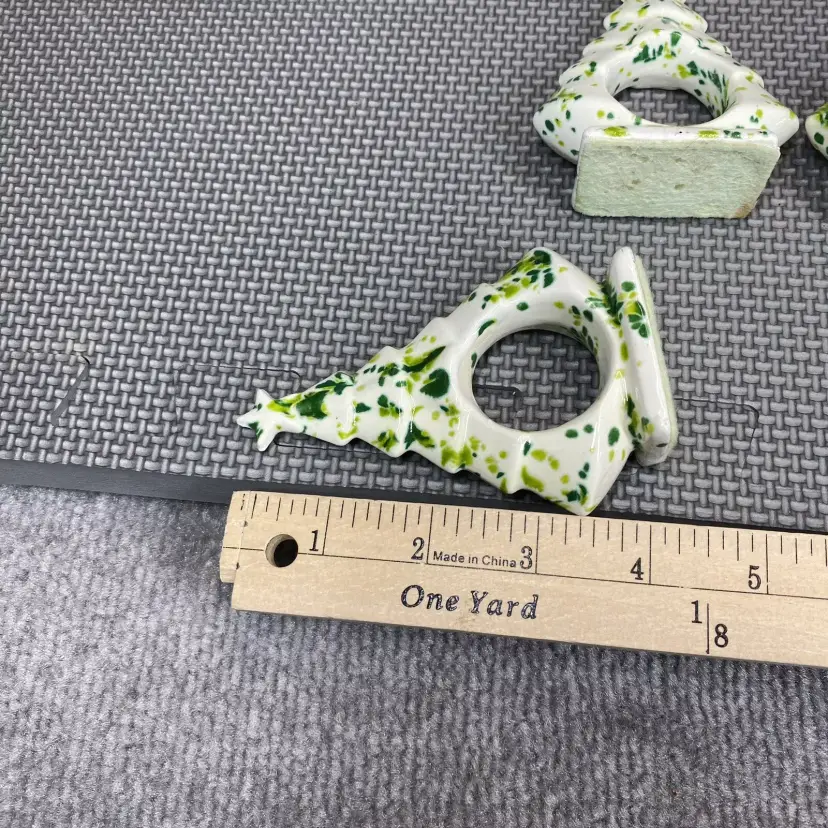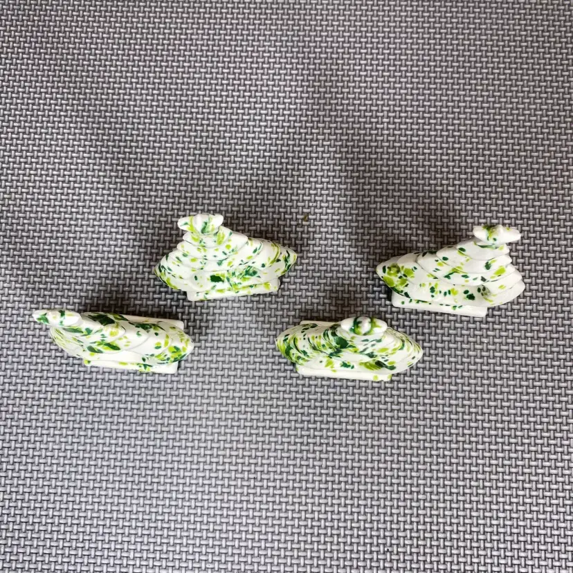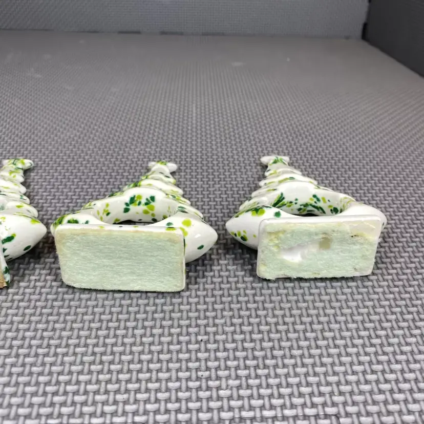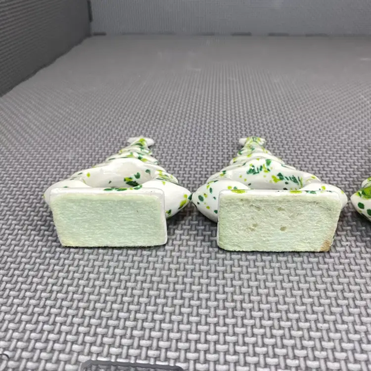 Preowned, on has chip one bottom corner, one has felt loss on bottom, see photos for details and measurements.
