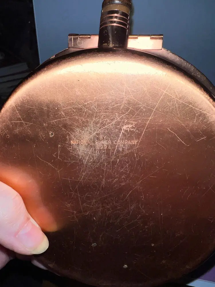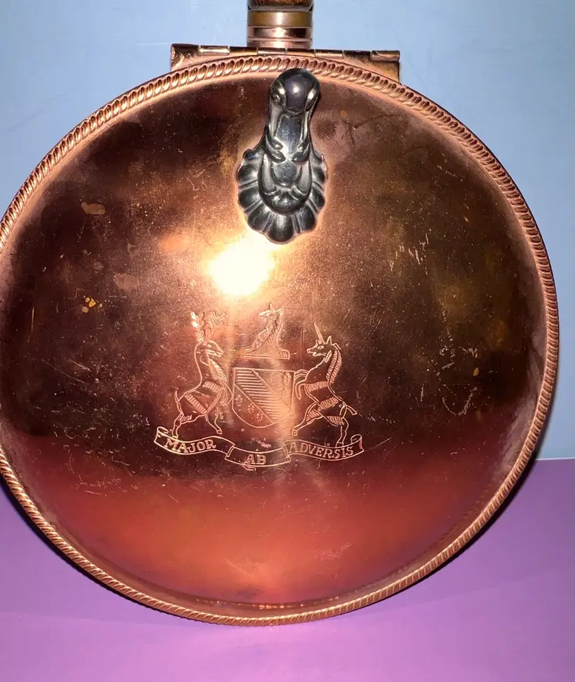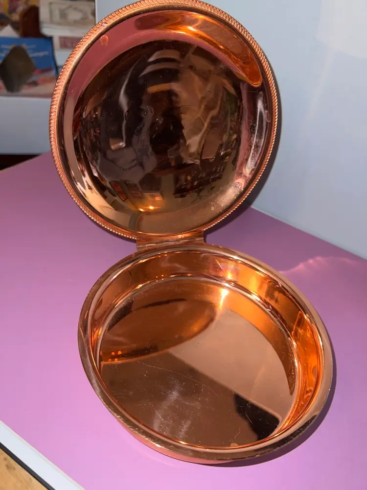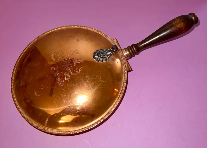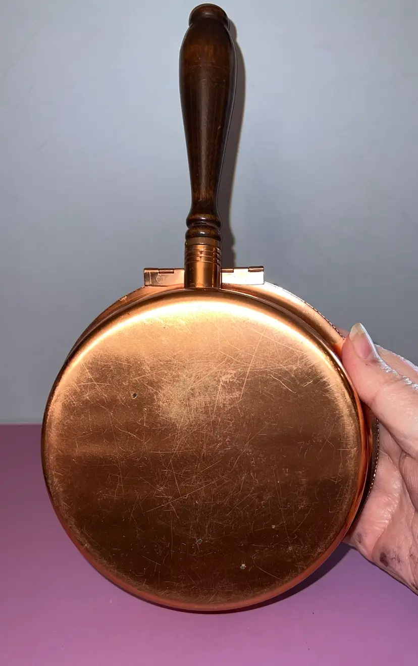 Vintage copper clad silent butler / crumb catcher. 11” including handle. 6 1/2” across. Some scratches as normal wear in vintage item.
