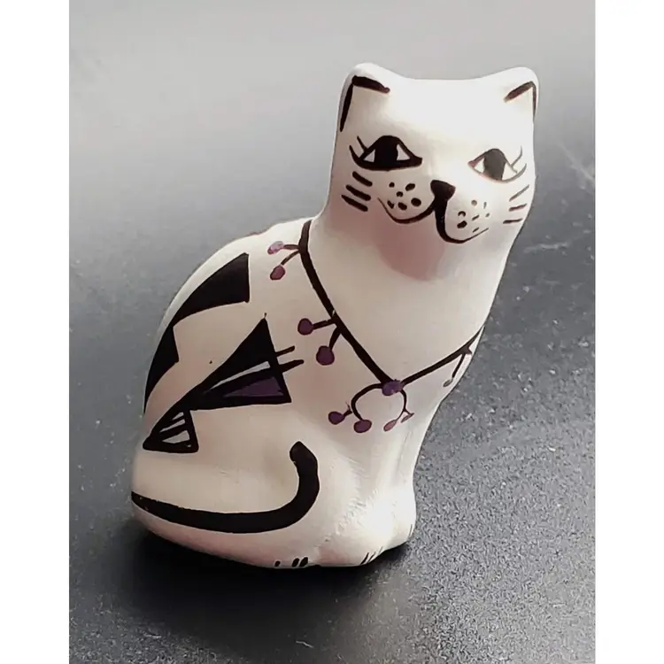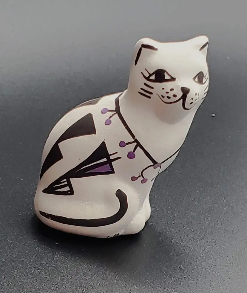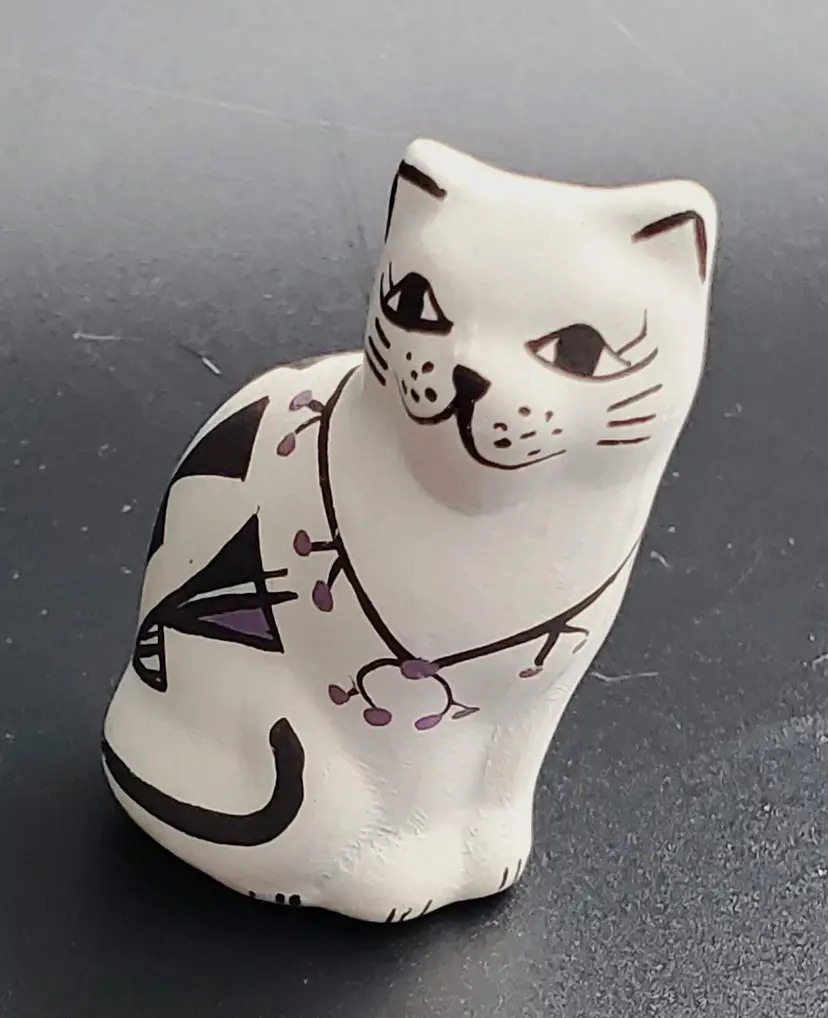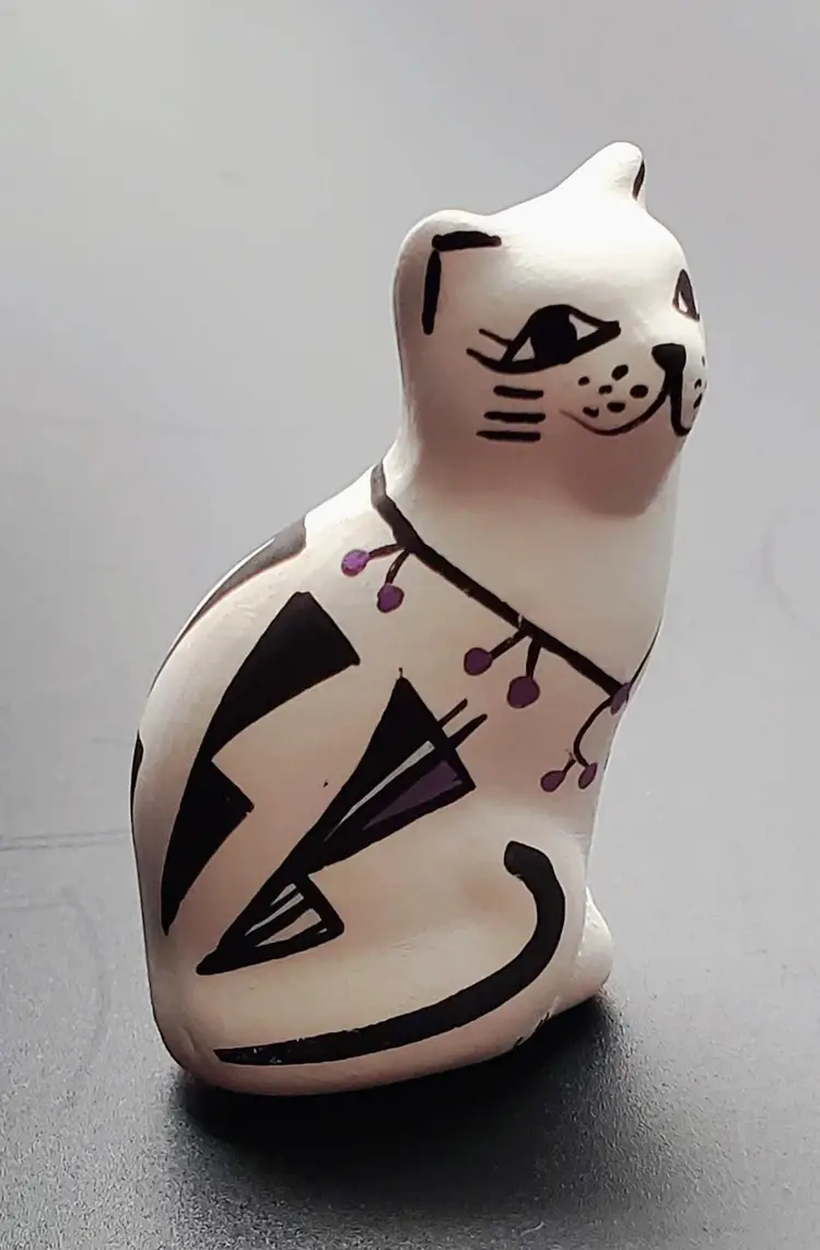 This vintage cat figurine was created by Native American Acoma artist P. Iule.