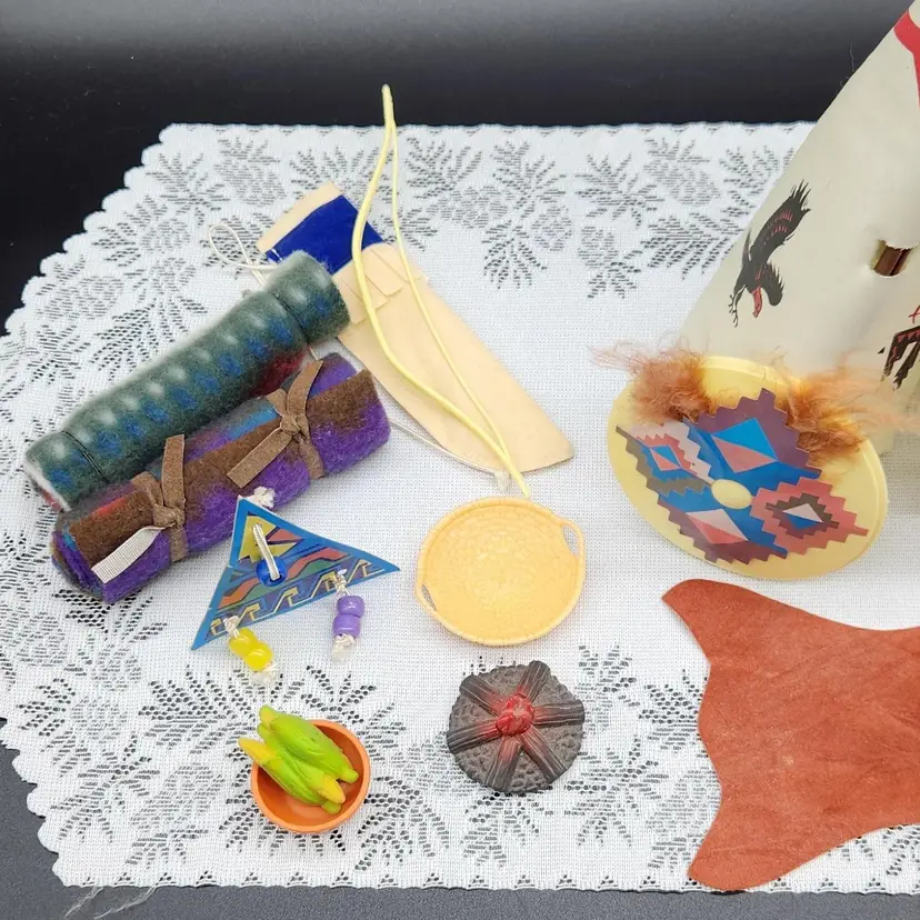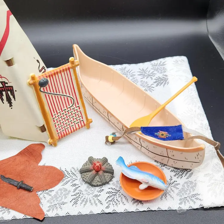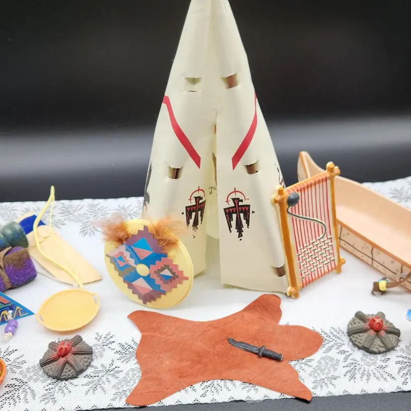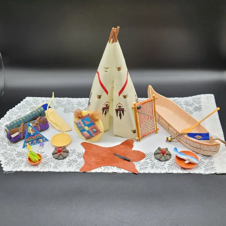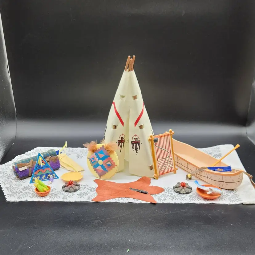 Includes a detailed teepee, canoe, and various accessories. Perfect for collectors or educational displays. No visible damage.