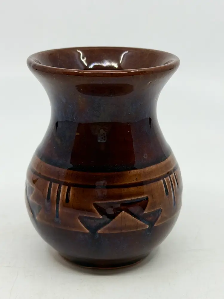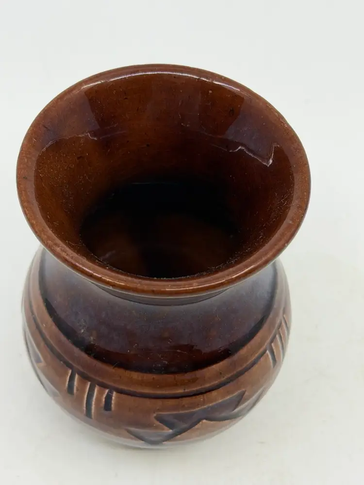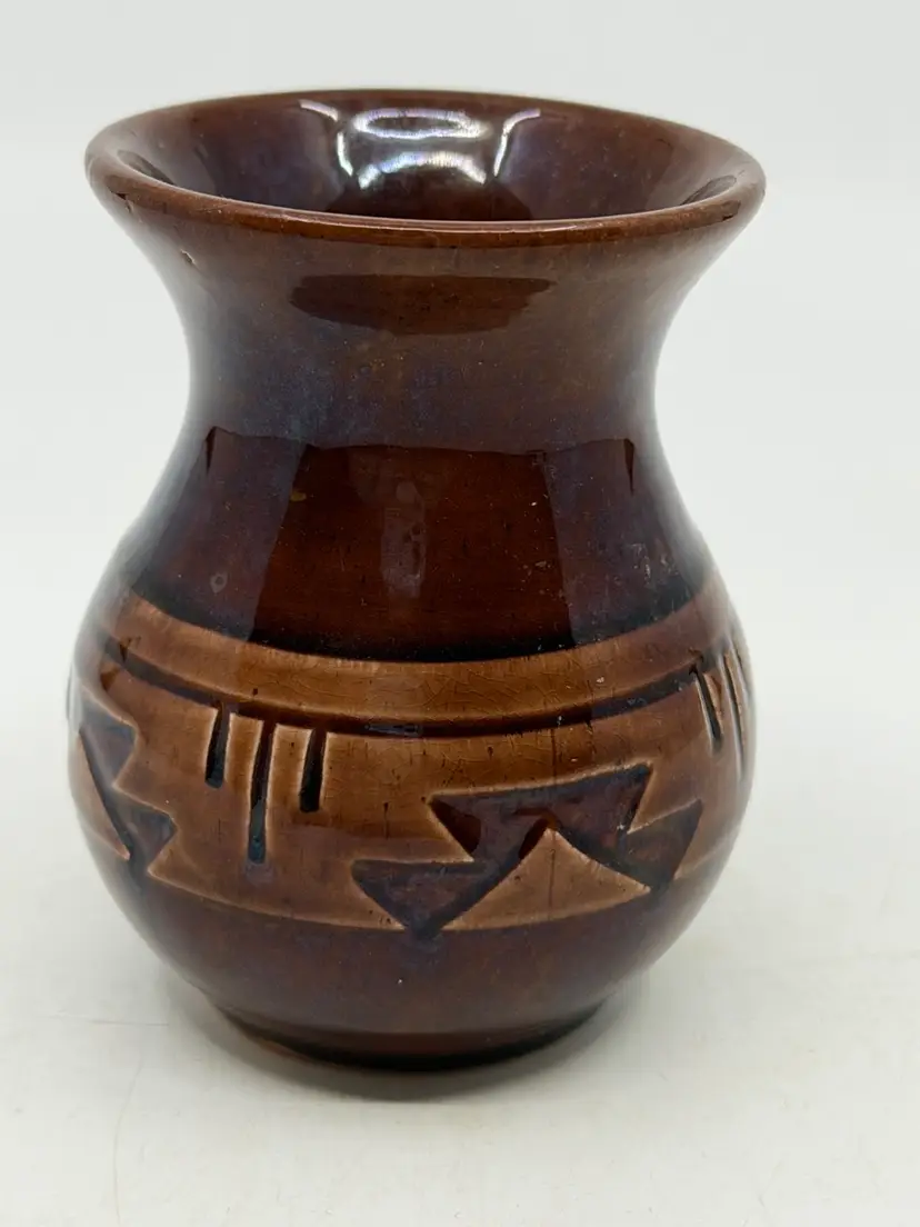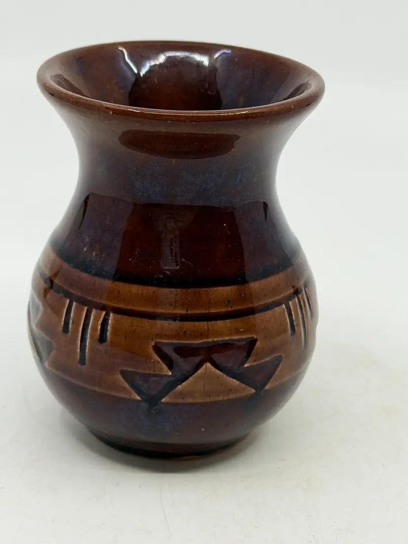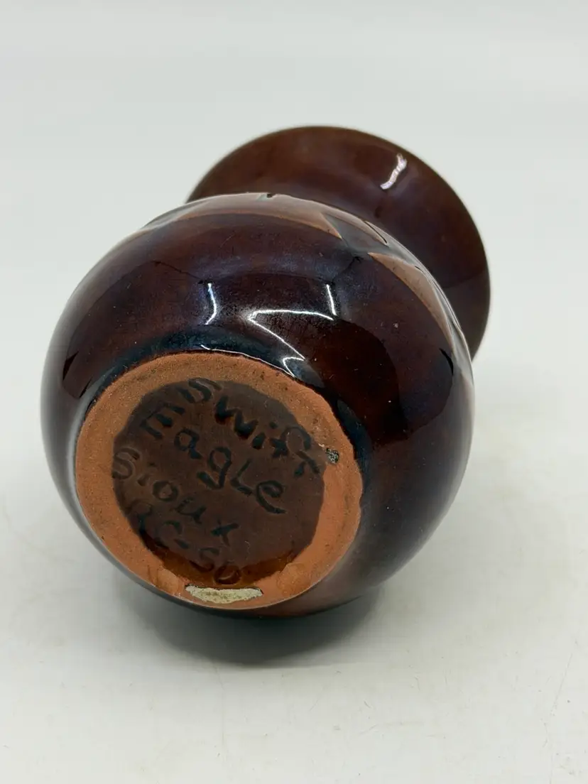 3 1/2” tall. READ: 2 small chips in unglazed base, see last picture.