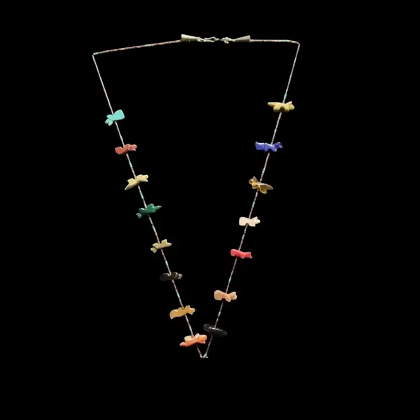 Fetish necklaces are a significant form of Native American jewelry, particularly associated with the Zuni and Navajo tribes. These necklaces are adorned with small, carved animal fetishes, each representing a spirit or power believed to offer protection or guidance to the wearer. The animals are carved from various stones and materials, with turquoise being a popular choice due to its spiritual significance. The craftsmanship often involves intricate detail, capturing the essence of each animal.