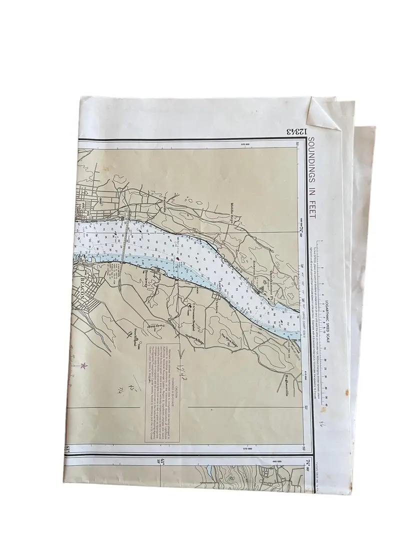 Vintage Nautical Chart 12343 NOAA Hudson River- New York to Wappinger Creek. c. 1984 30" x 43"
