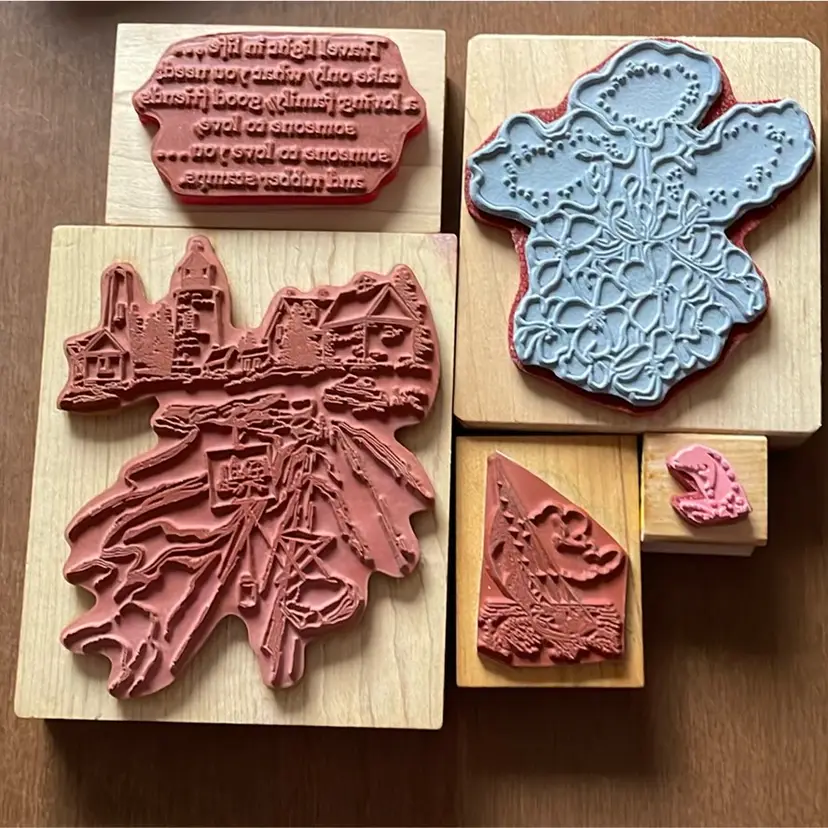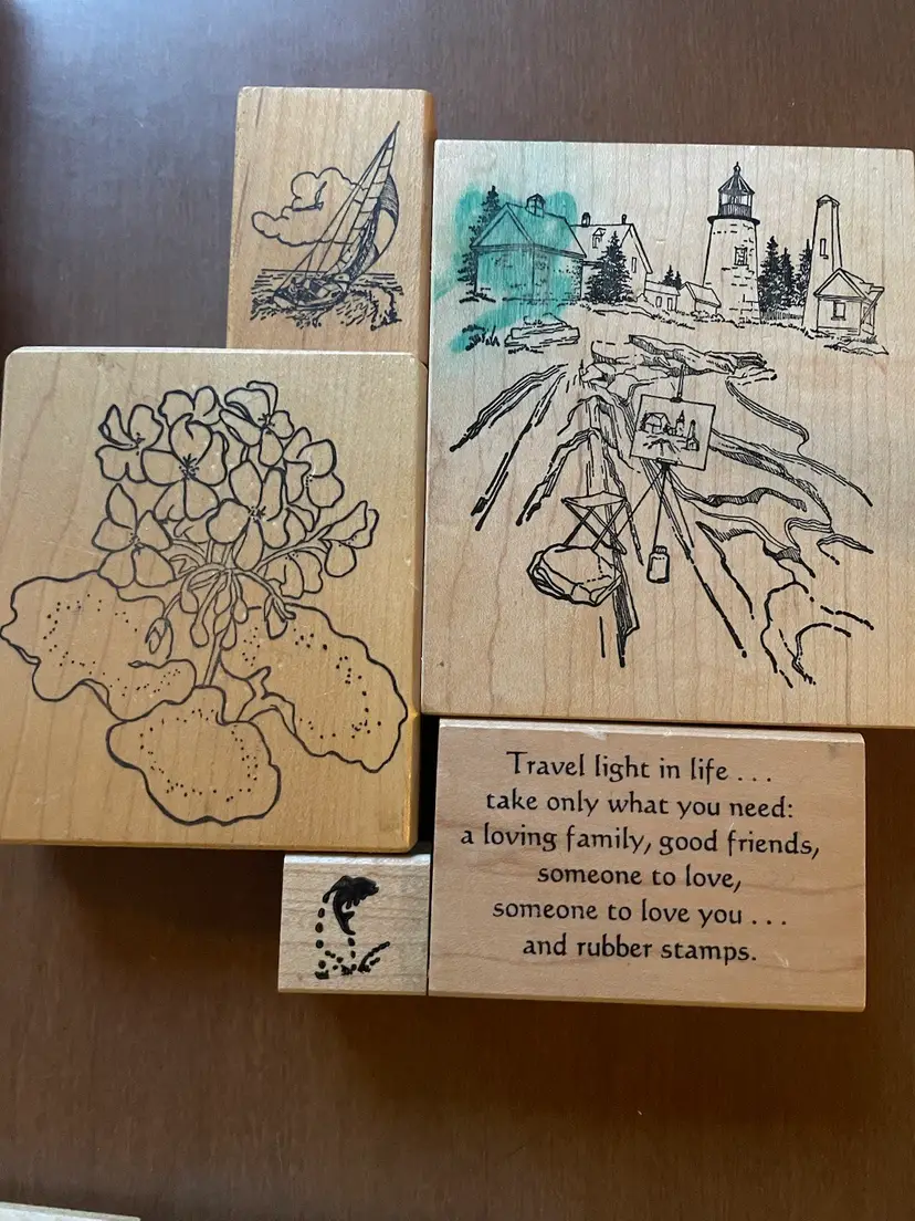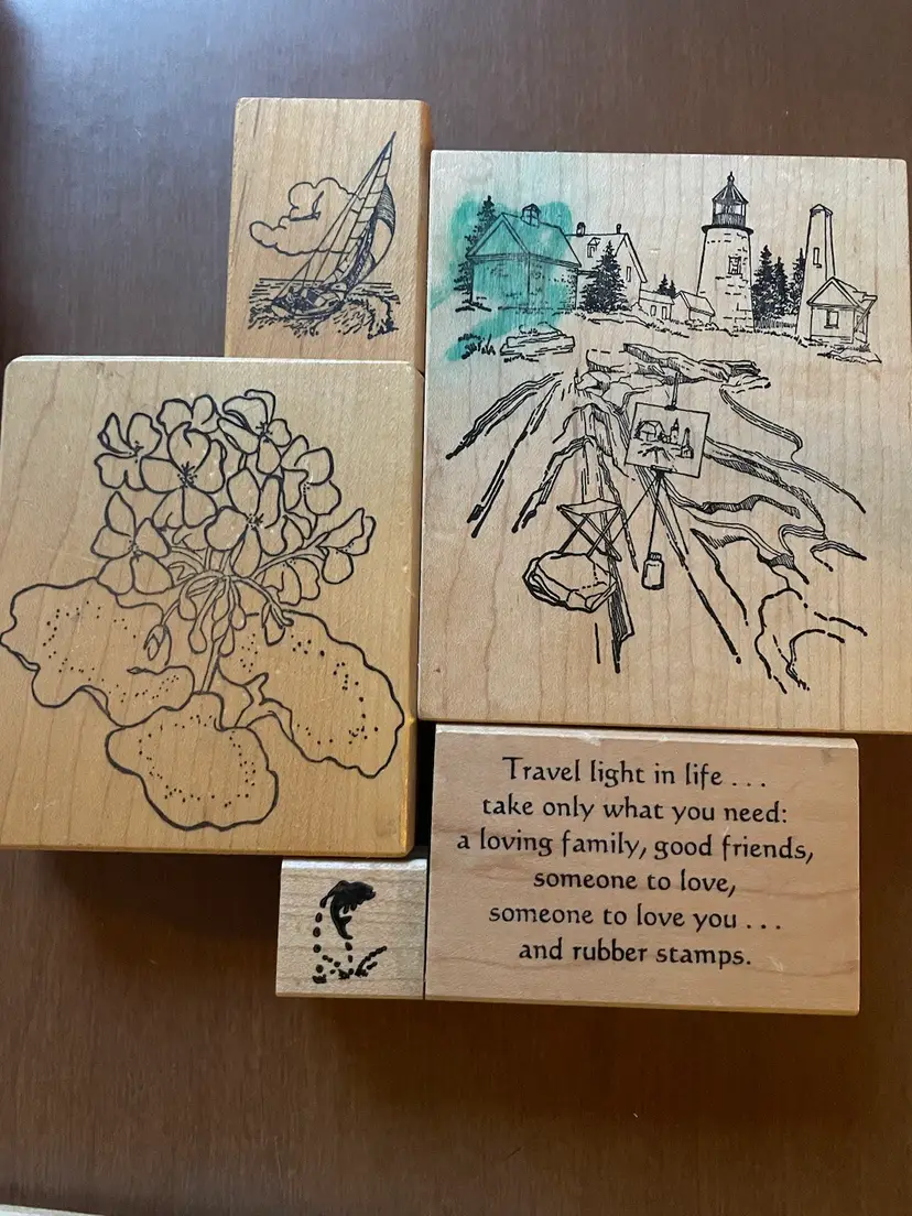 This lot contains 5 vintage rubber stamps with a nautical travel theme. These beautiful stamps are in good condition and come in a variety of sizes. There is a small stain on one of the wooden blocks. These would make great additions to your collection.