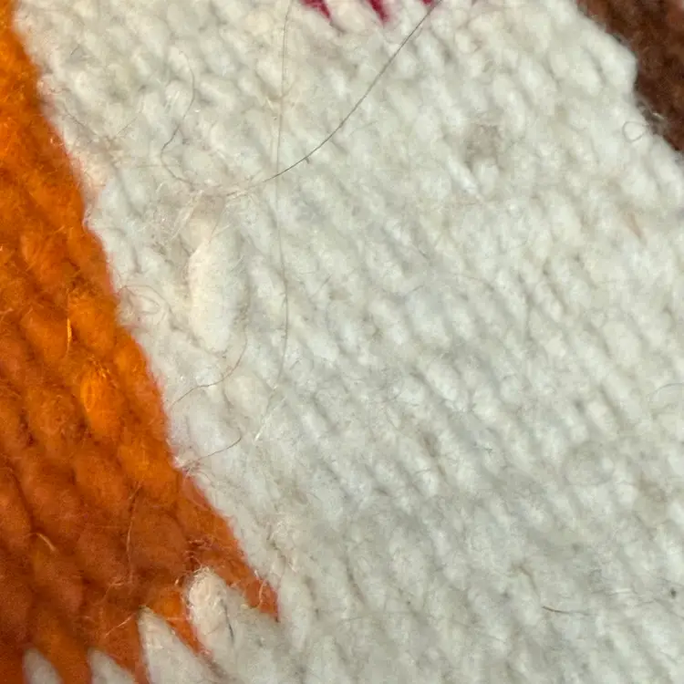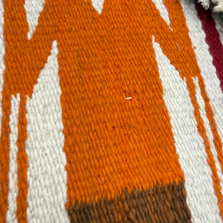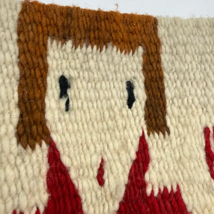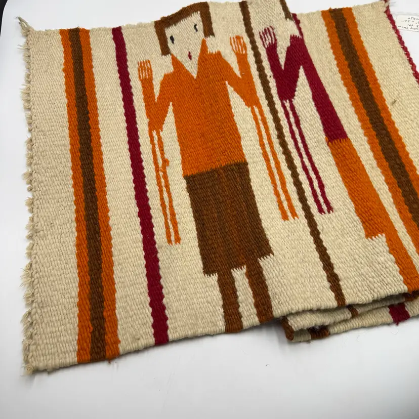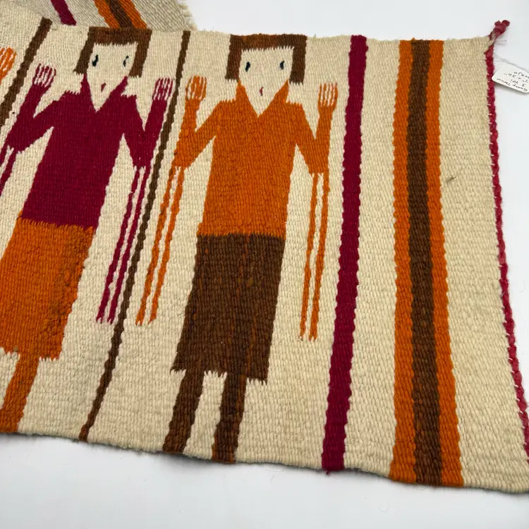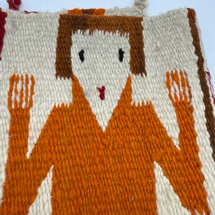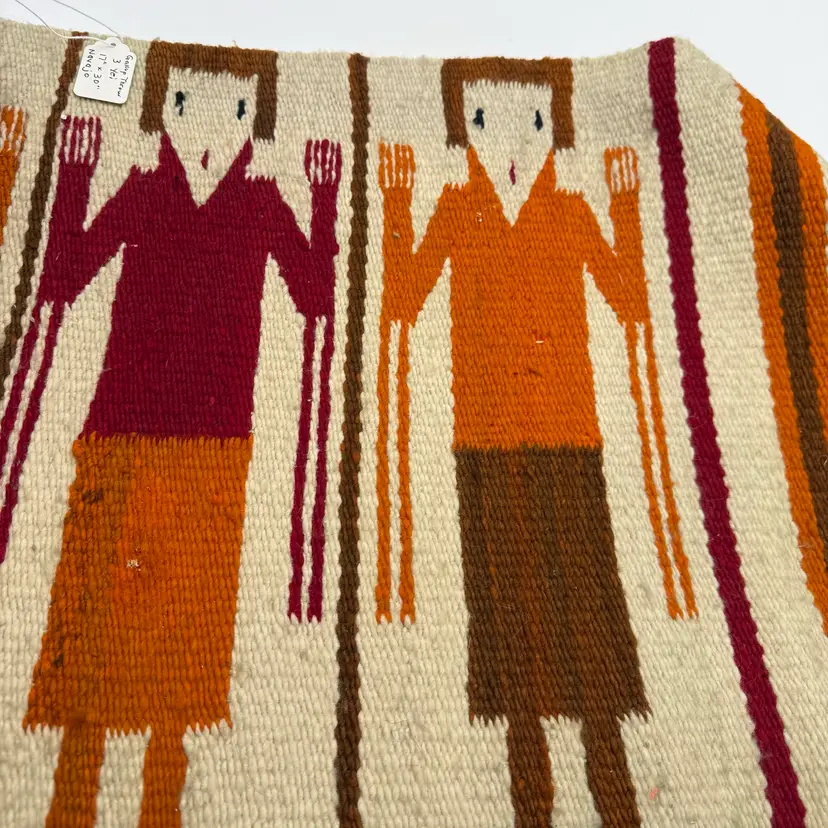 This rug dates to the 1960s-1970s. The figures on this rug are Yei, which represent benevolent supernatural beings or "Holy People" in Navajo culture.