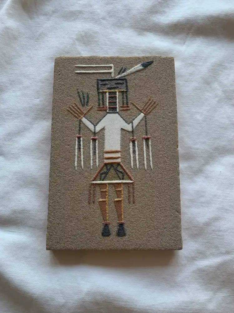 The product is a vintage Navajo sand painting depicting a Holy Man, signed by artist J.A. Begay. This unique piece of art originates from the United States and embodies the traditional Native American culture. The intricate design and craftsmanship of this painting make it a valuable collectible item, showcasing the rich artistic heritage of the Navajo tribe.