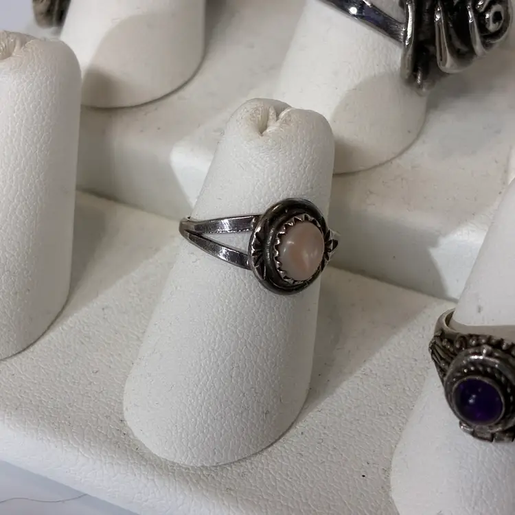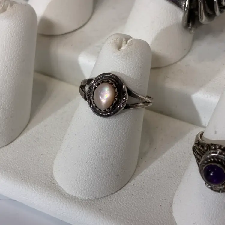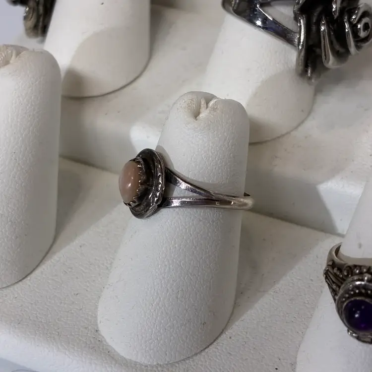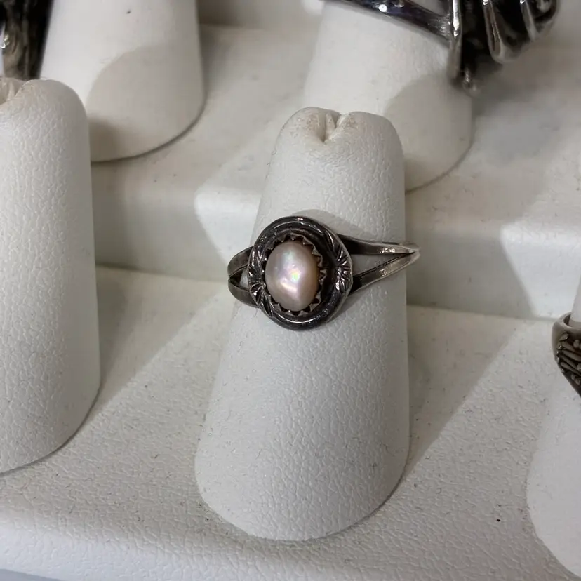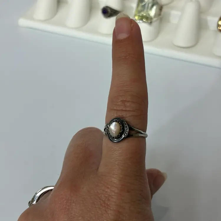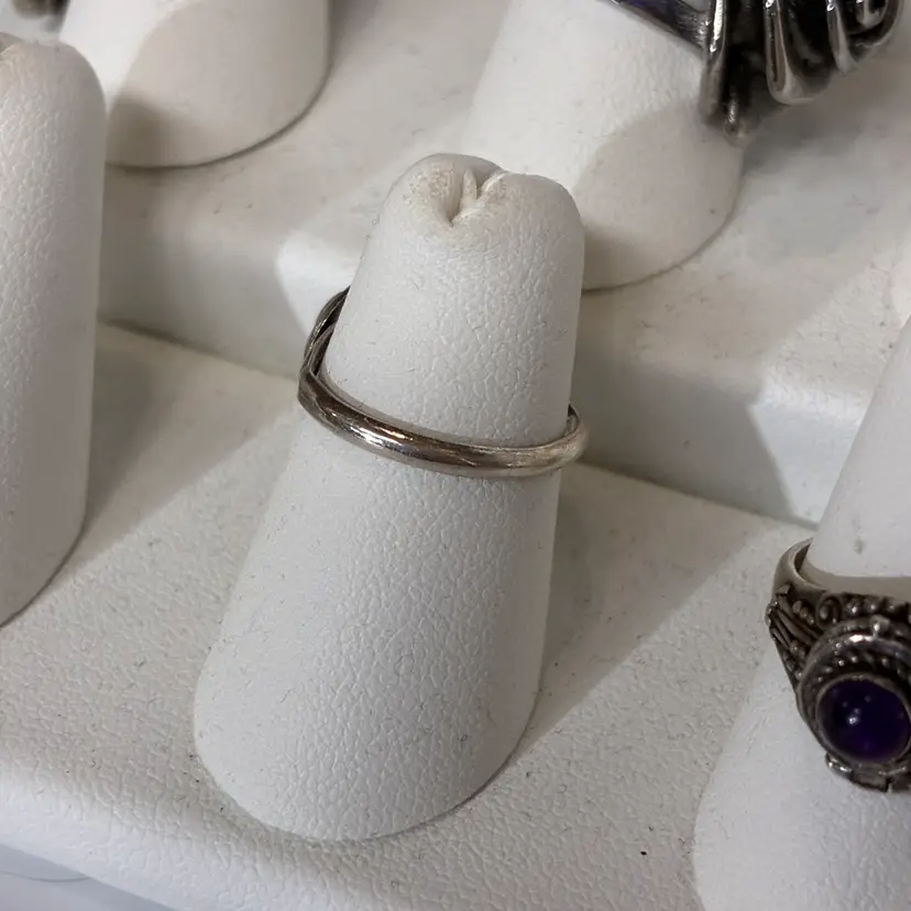 Some ware to the band noted and patina throughout no damage noted unsigned but acid tested positive for Sterling silver