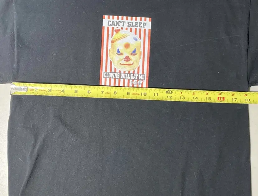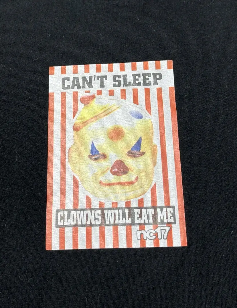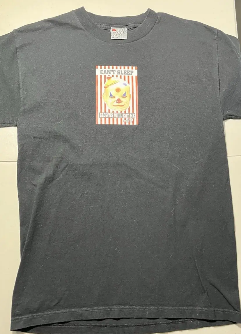 See all photos for condition. Rare, NC17 vintage T shirt. “Can’t Sleep, Clowns Will Eat Me”. Size medium. Minor marks on shirt, shown in photo. Selling as is.