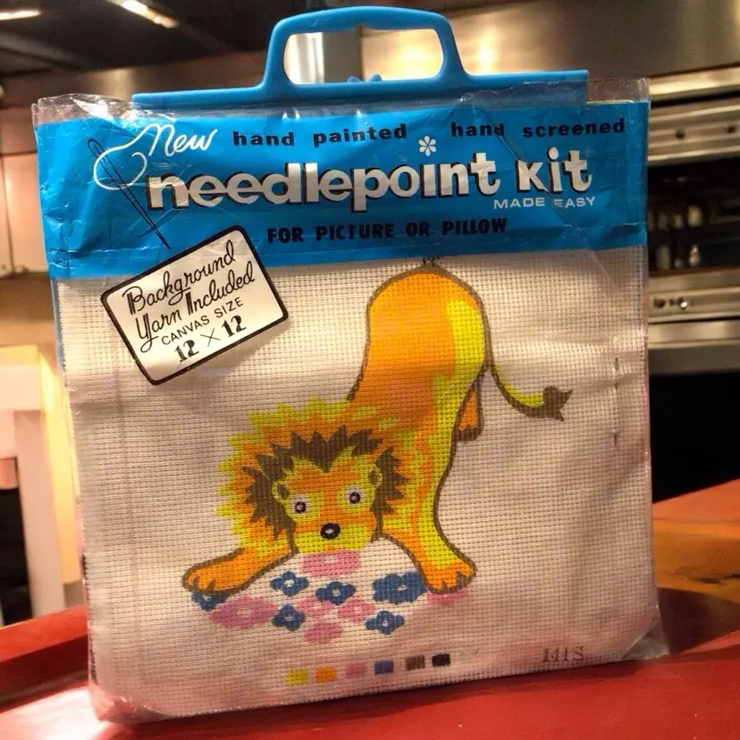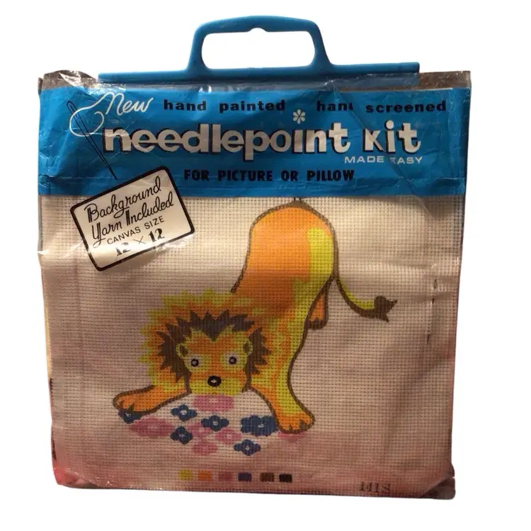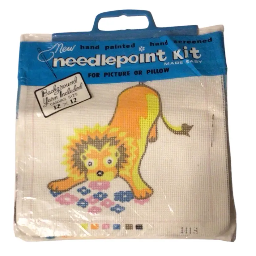 This vintage needlepoint kit, model #141S, features a majestic lion design that will add a touch of wildlife to any room.