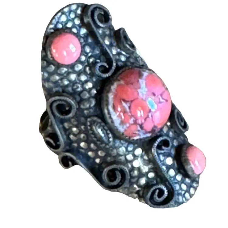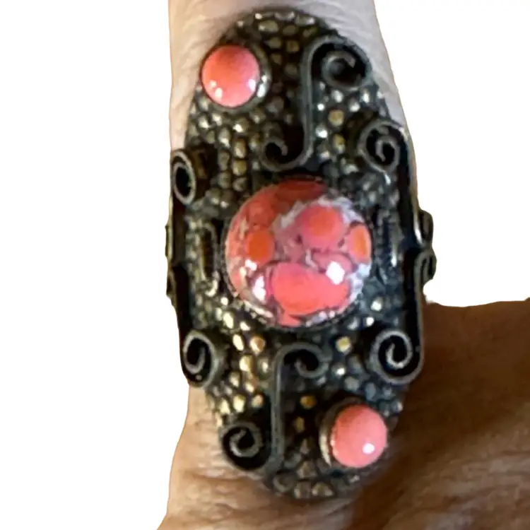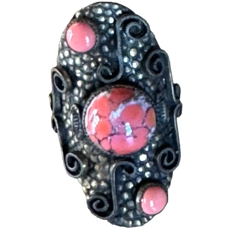 1920s antique NEMCO, Little Nemo Company, Czech Glass Cabochon Accented Ring, Art Deco Style