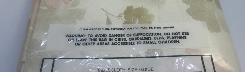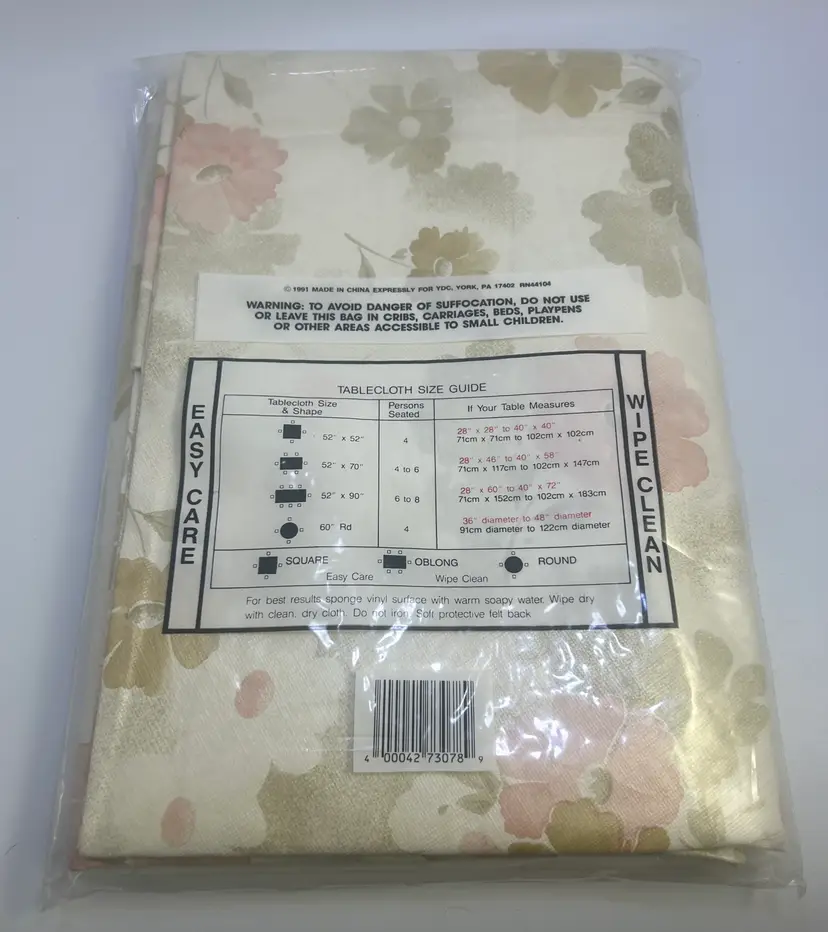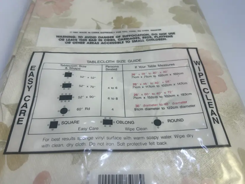 New old stock! Flower design flannel back tablecloth.