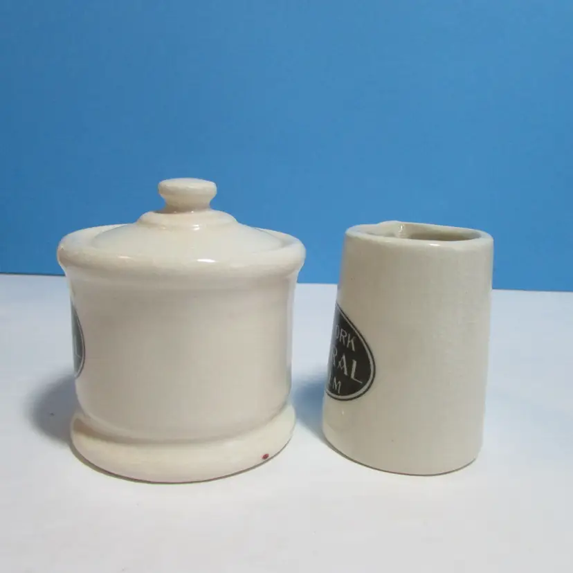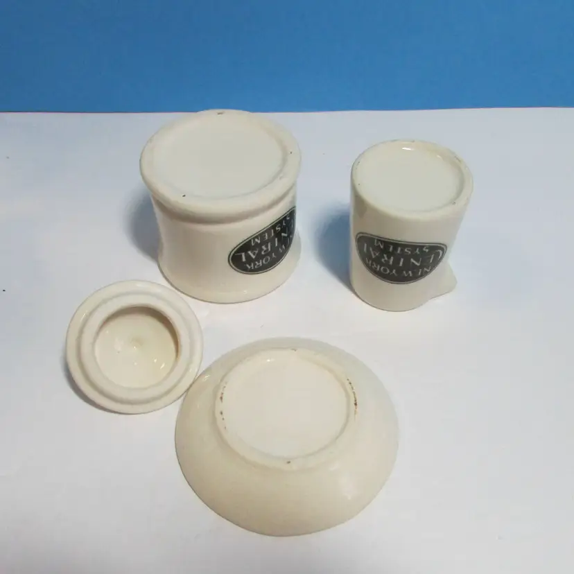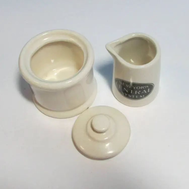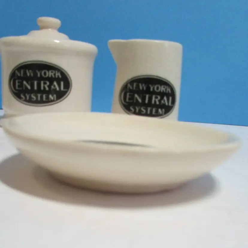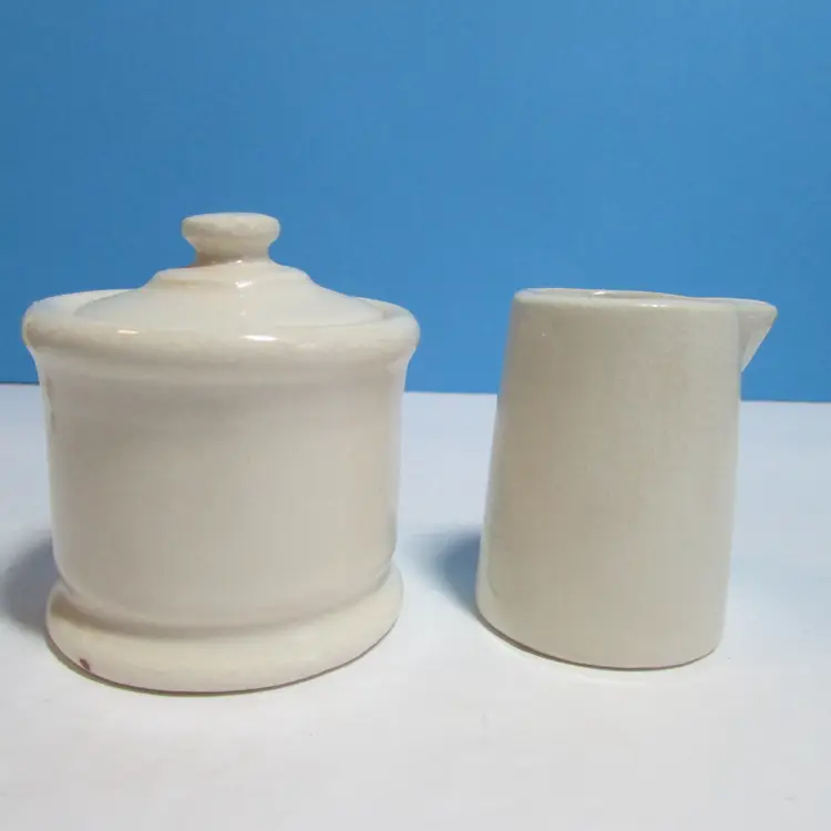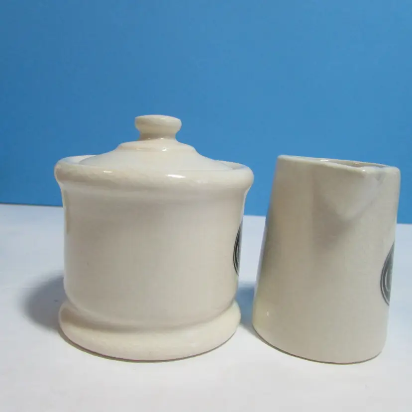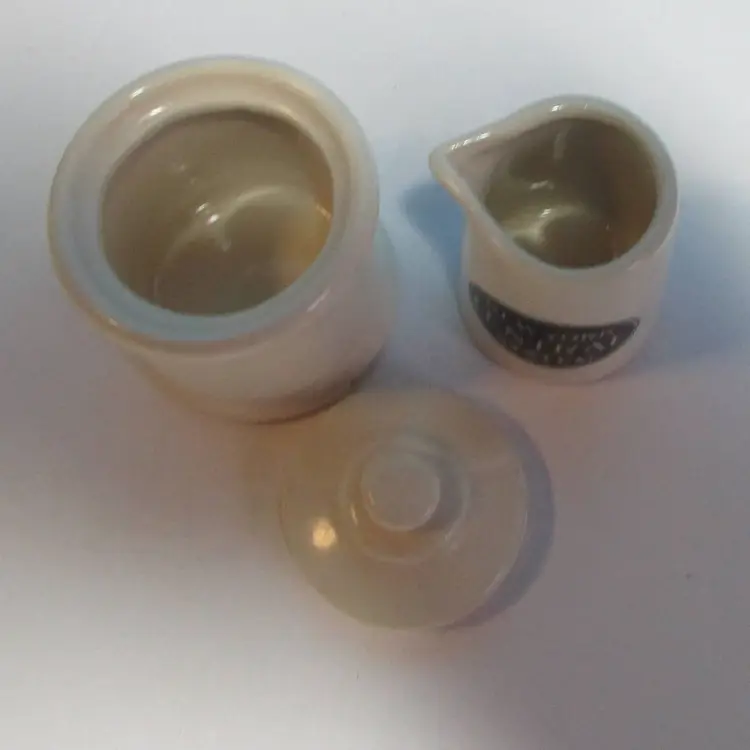 This lovely set has some wear, there is crazing and the sugar bowl has a discolored spot on the lid. The creamer looks like it has a crack inside, but it is smooth to the touch so it may have been done in production. Still a nice set to use and display. The creamer is about 2 1/4" x 1 3/4" round, the sugar bowl is about 3" x 2 1/2" round and the small plate is about 1/2" x 3" round. This is shipped from a smoke free home. Thanks for looking!