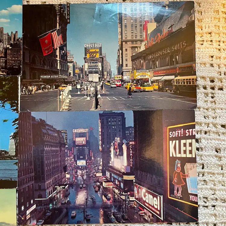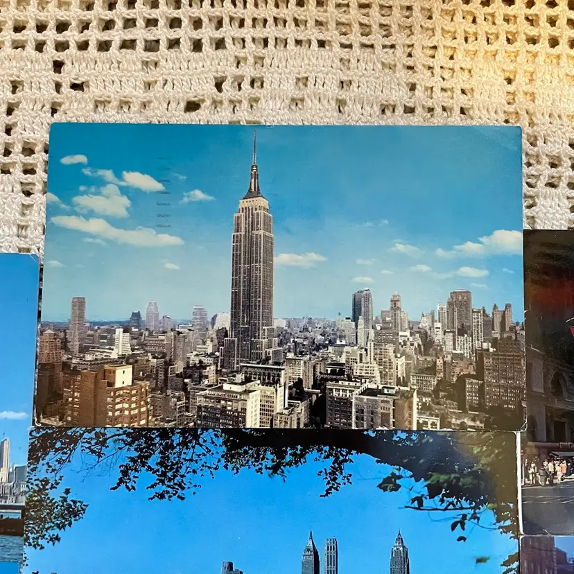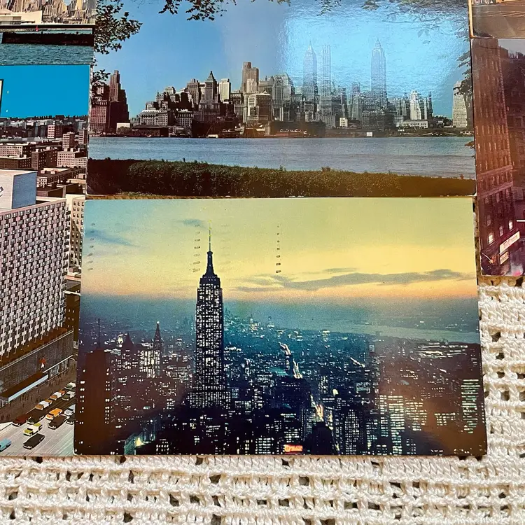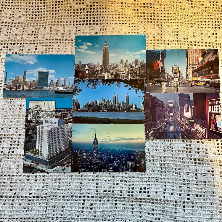 Seven Vintage New York City Postcards Empire State Building Lower Manhattan Times Square United Nations City Squire Motor Inn 0000625