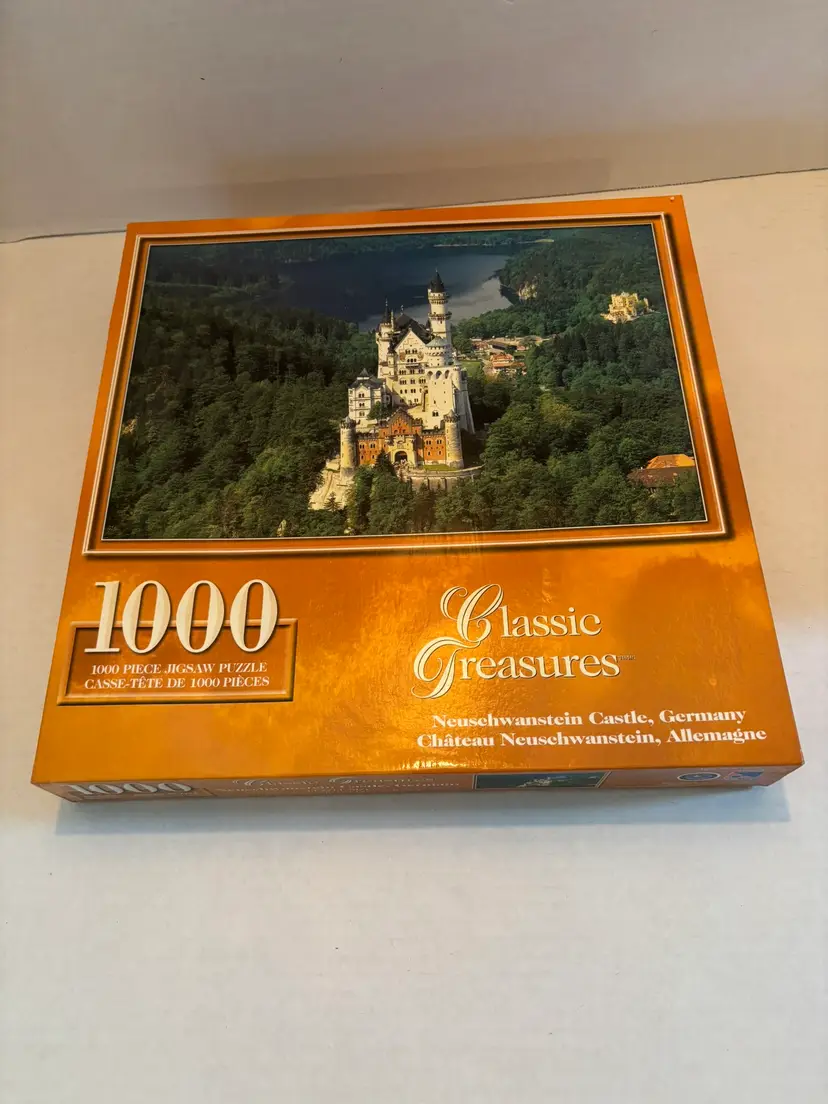 The Vintage NIB Classic Treasures 1000-piece Puzzle Neuschwanstein Castle, Germany is a high-quality jigsaw puzzle featuring a beautiful landscape theme of Neuschwanstein Castle in Germany. With 1000 pieces made of durable cardboard, this puzzle offers a challenging and engaging activity for puzzle enthusiasts. The colorful multi-color design and detailed imagery make it a captivating piece for fans of landscapes and historical landmarks. This puzzle ensures a premium product with a touch of nostalgia for those who appreciate the beauty and craftsmanship of bygone eras.