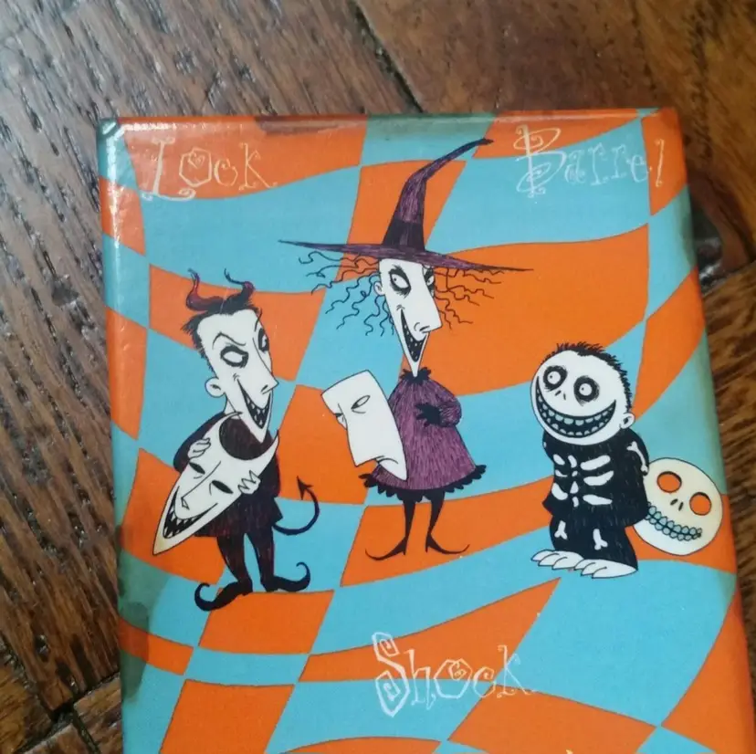 Rare set of vintage 1990s Disney promo pins for the VHS release of 'Nightmare Before Christmas.' There's a small tear on the back of the Jack pin (see second picture) that doesn't affect the pins usability and minor blemishes on the sides of the Lock, Shock, and Barrel pin (see third picture).