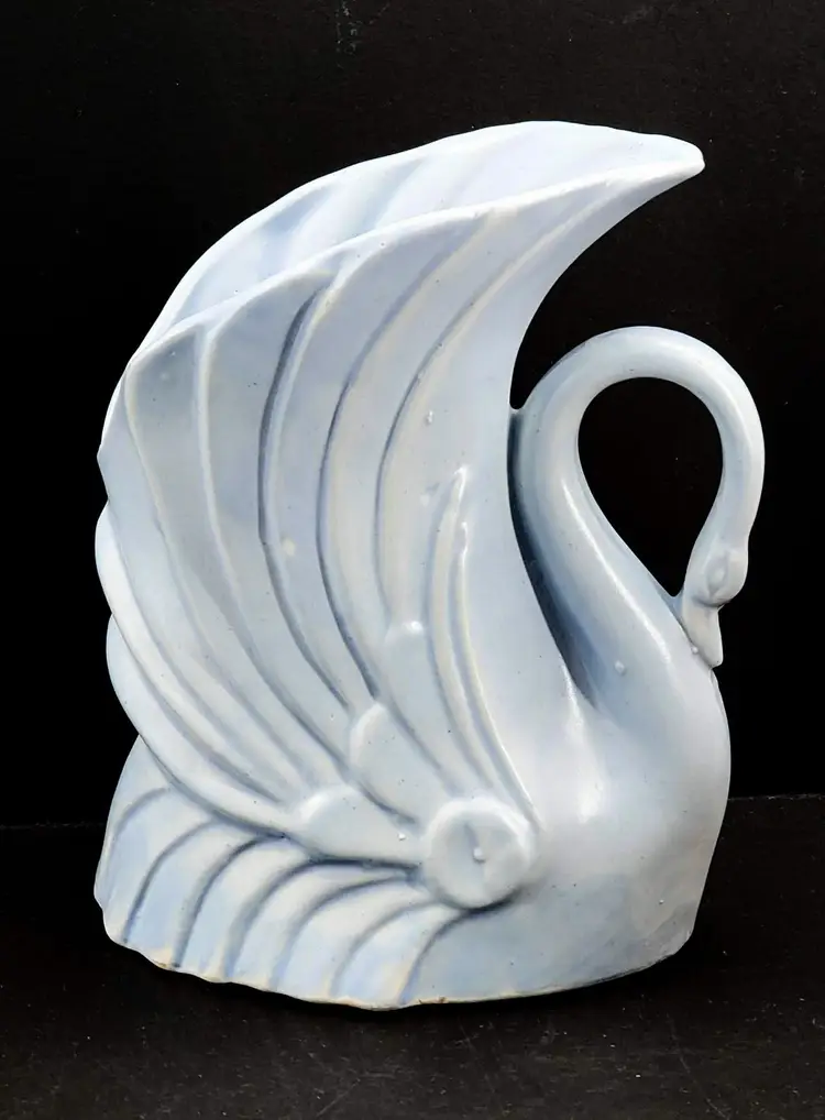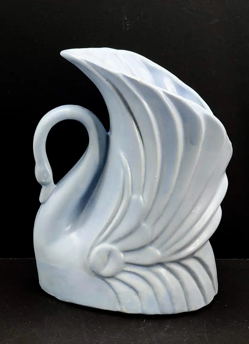 Crafted in the United States during the 1940s, this Niloak ceramic swan vase is a stunning example of Mid-20th Century design.