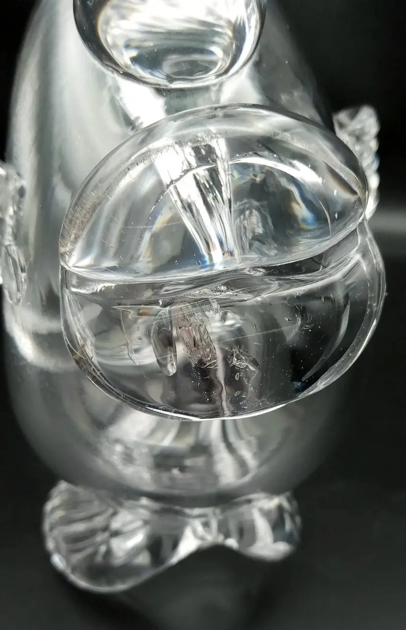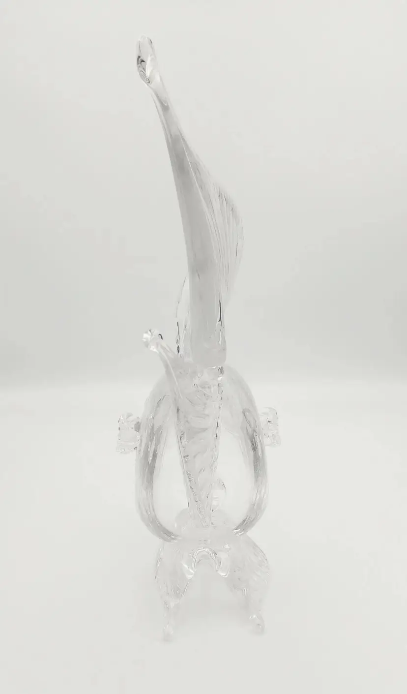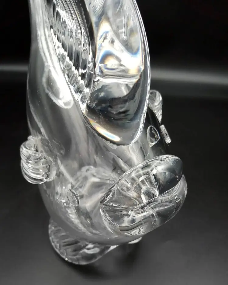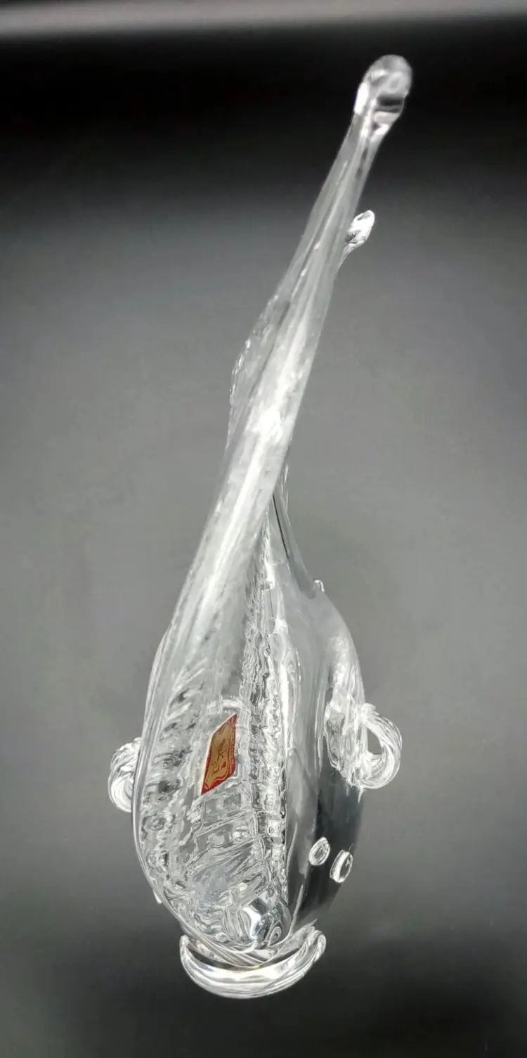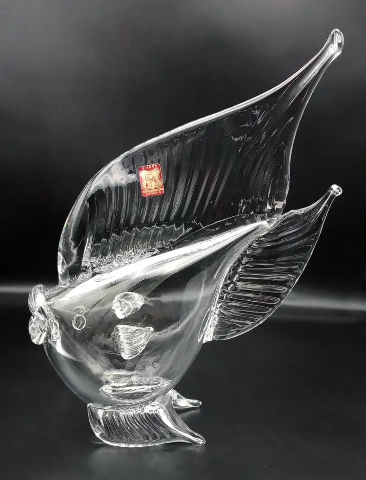 This is an impressive sized crystal fish, standing at slightly over a foot in height. There are a few places with what I would call anomalies, not damage. There is a rough spot where the fins meet in the back but I don't think this is damage. I think it's just the way the glass was made. Also, there is some discoloration about the mouth but again, it's within the glass and I believe part of manufacturing. Please view the photos carefully and let me know if you have any questions. Thanks for looking!