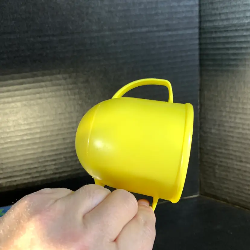 This looks like it has never been used. The cup measures 4 inches across, 2 1/2 inches wide and 3 3/8 inches tall. Weighs 6 ounces. If the actual postage ends up being less than what you paid, you will be refunded for anything over one dollar.