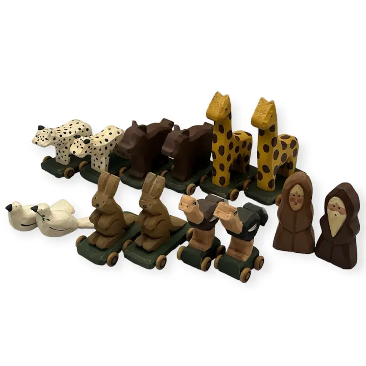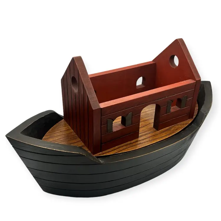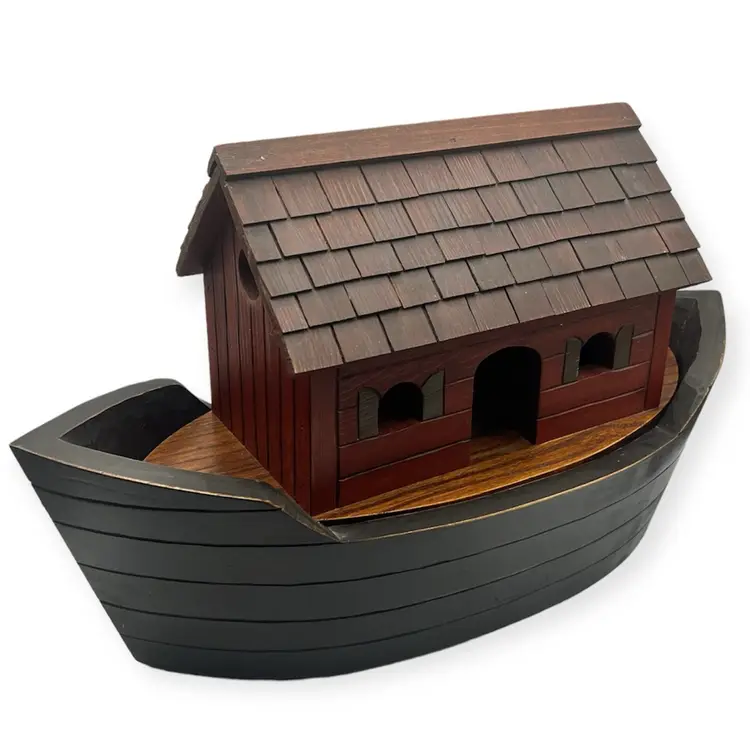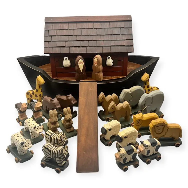 This ark is all handmade and hand painted. It is in excellent condition and signed by the artist. All of the animals can be stored inside the ark.