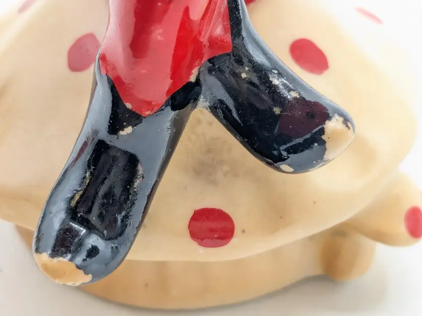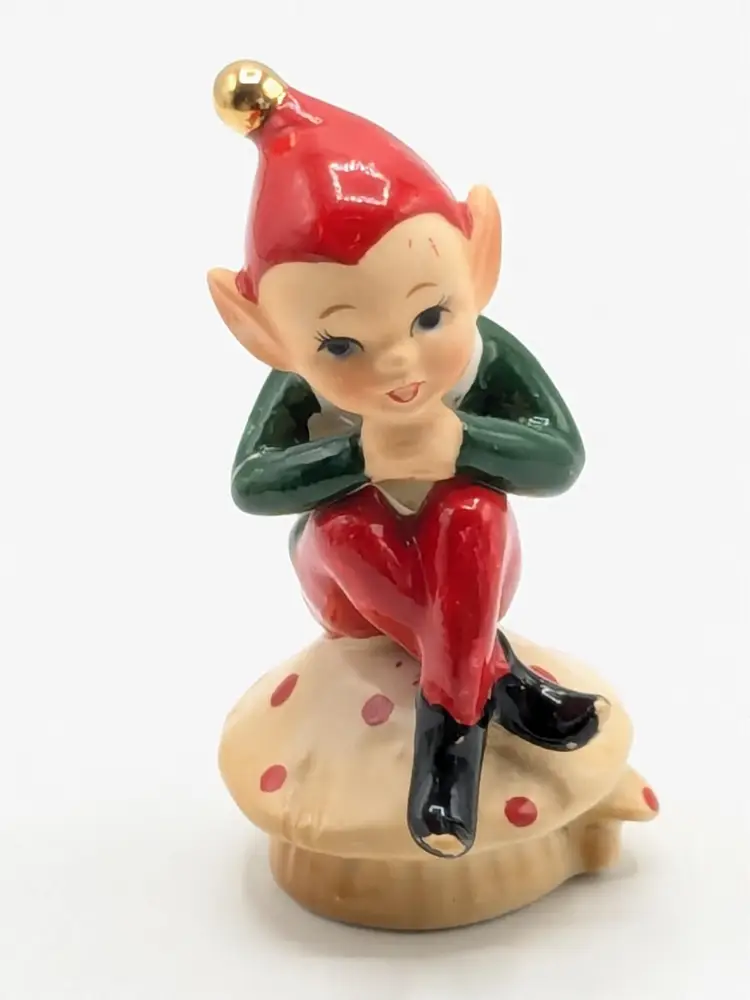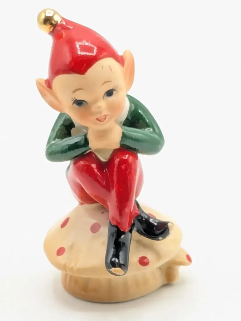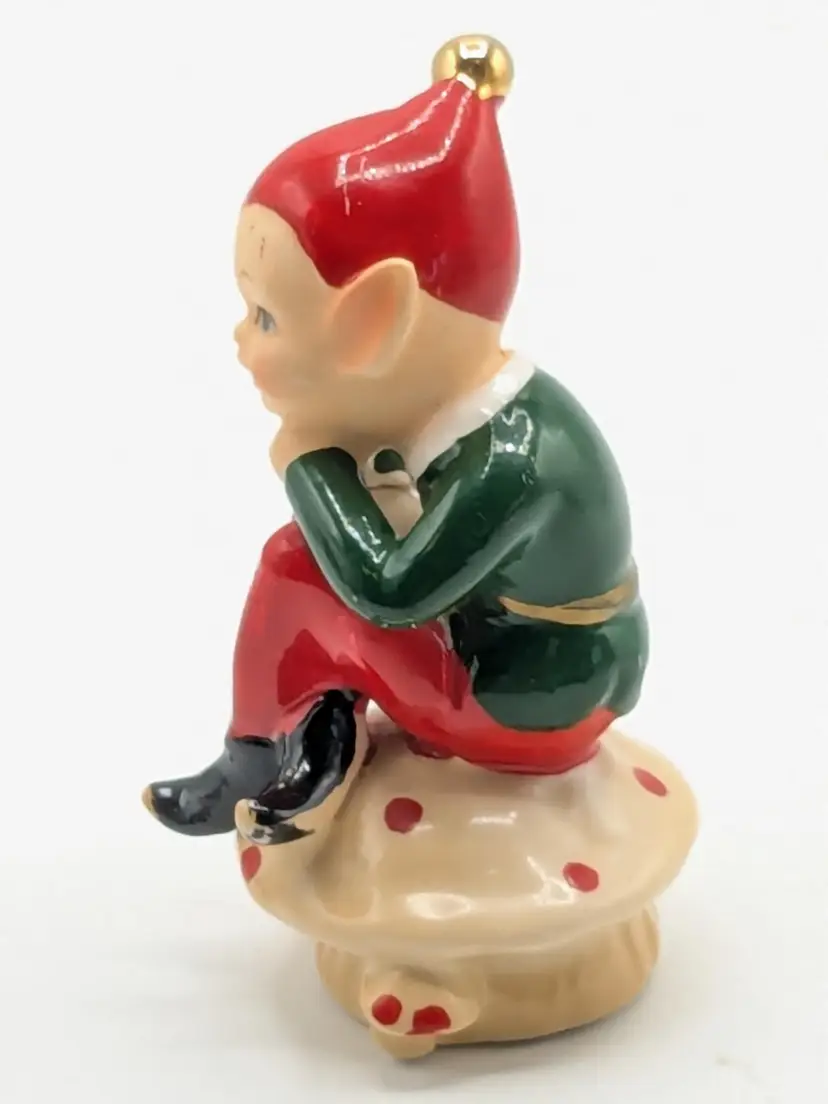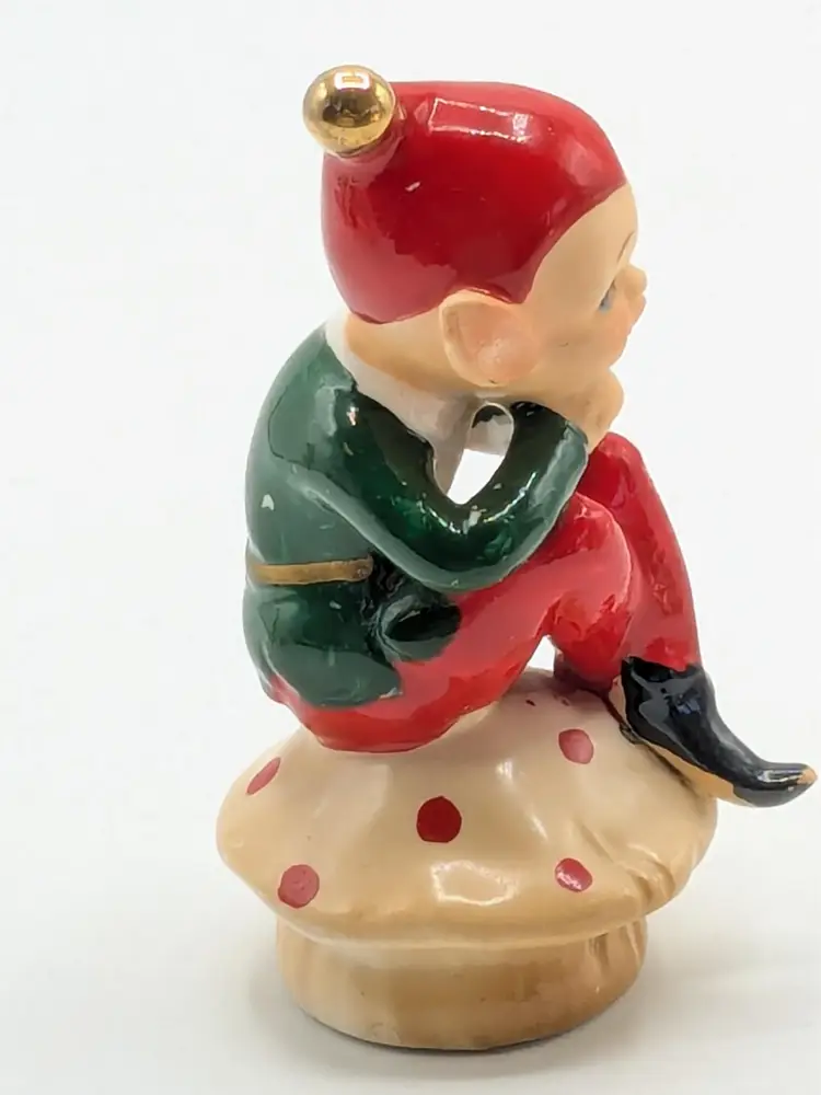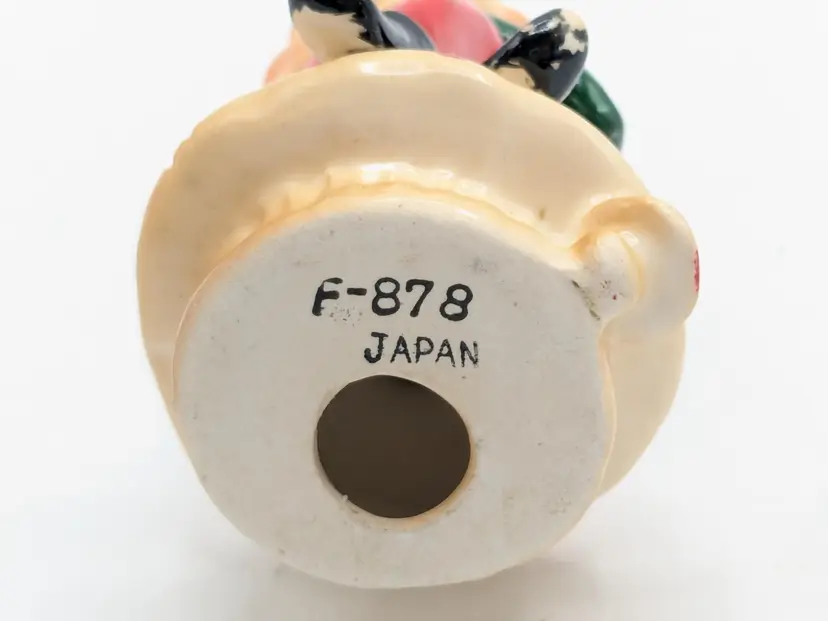 CUTE! HTF Good condition with some colour loss on his shoes and back and hat which are depicted in the last two photos. Norcrest. Marked F-878 Japan. Measures 3 3/4" height and 2" wide. (ENS)