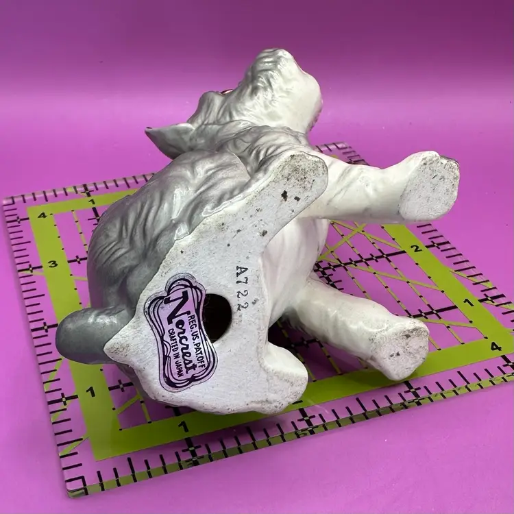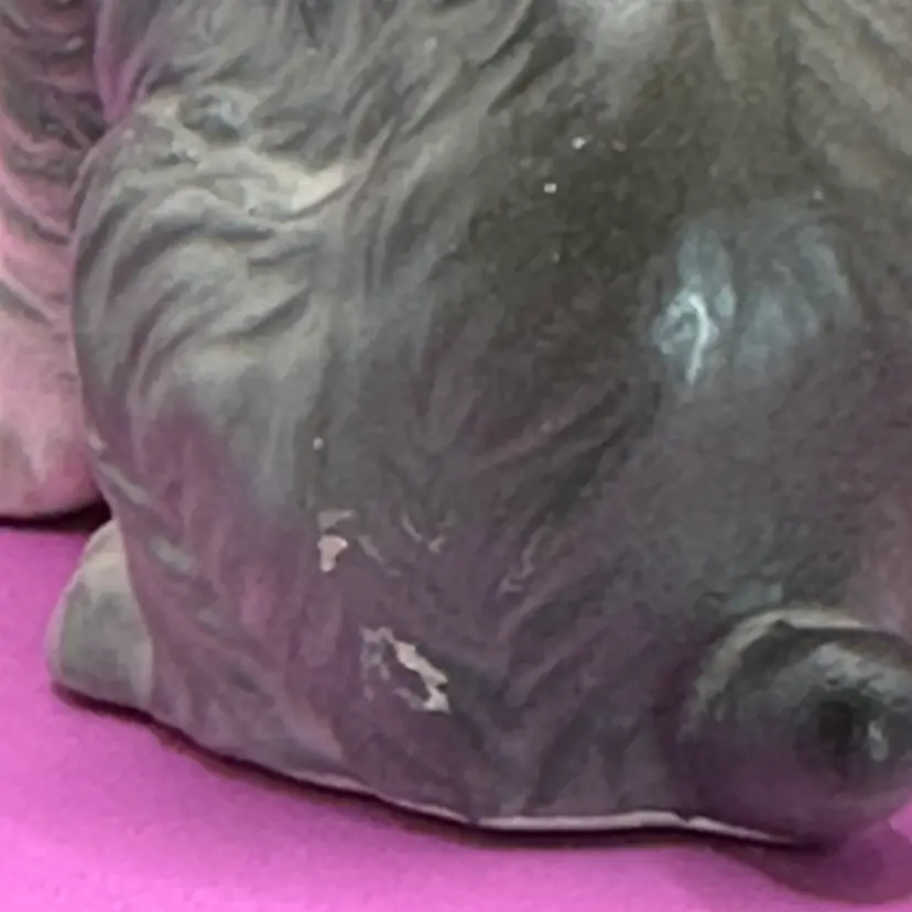 This guy is ready for you to adopt him. No cracks chips or repairs. There is a scuff on his hind side where paint appears to have come off. See the last pic for this.