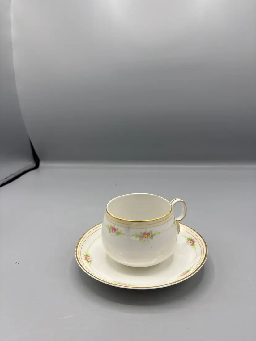 Elegant vintage Noritake bouillon cup and saucer set, a charming addition to any collection. The delicate cup measures 3½ inches wide by 2⅜ inches tall, while the matching saucer spans 5½ inches in diameter. Perfect for serving soup, broth, or displaying as decorative tableware. A timeless piece that captures the refined craftsmanship Noritake is known for.