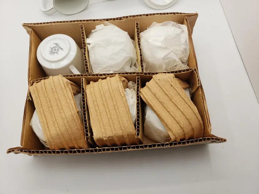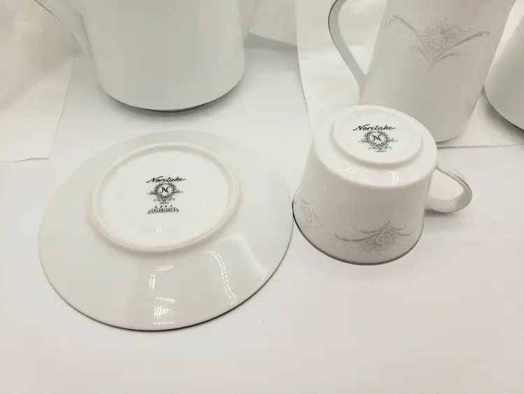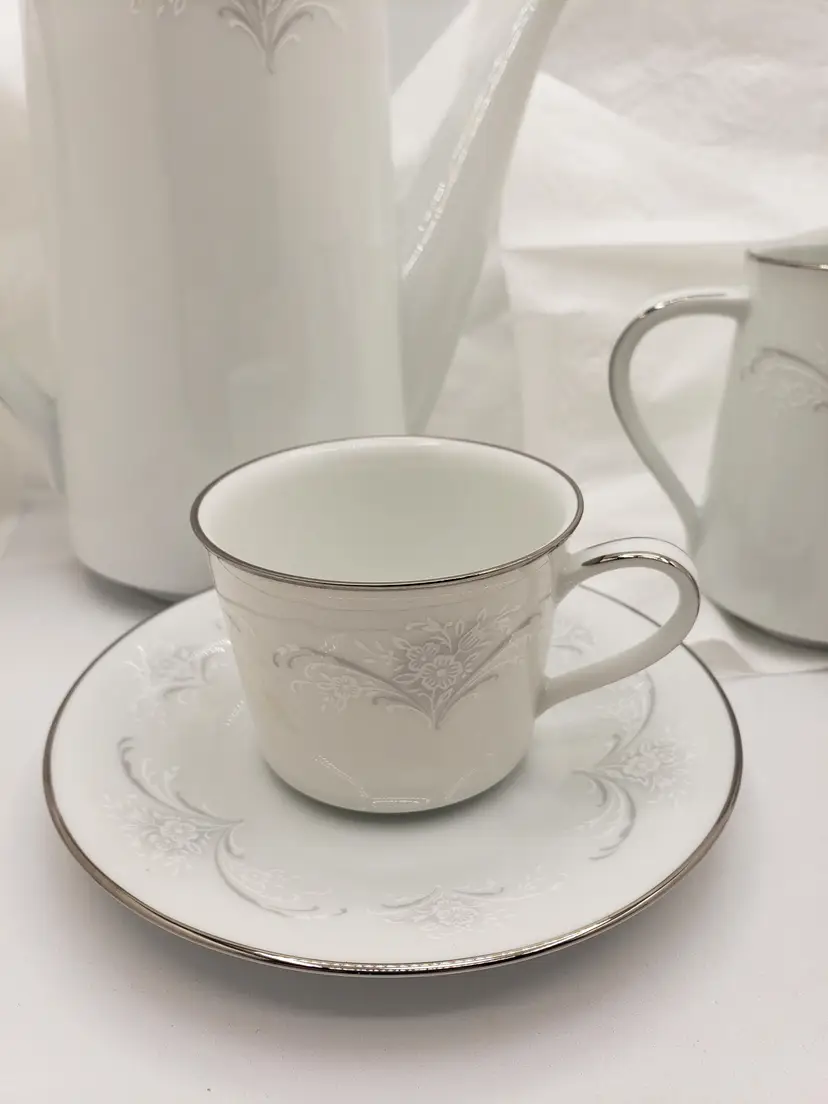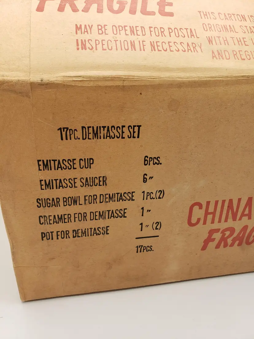 Vintage NORITAKE Casablanca 17 Pc Demitasse Coffee Pot Set RARE Mint Cond. 6842. I would venture to say you will never find this set as complete and in this condition again! It is in the original shipping box from Japan with original packaging. Never used. This Casablanca pattern 6842 was made in Japan from 1967-1984. This 17 piece demitasse set contains 6 cups (each holds about 3 oz), 6 saucers, a sugar bowl with lid, a creamer and the coffee or tea pot with lid. This is a rare opportunity to possess such a wonderful, historical set.