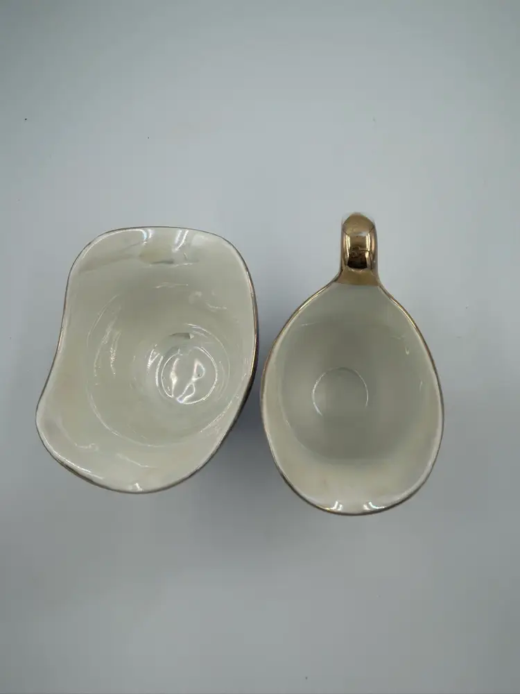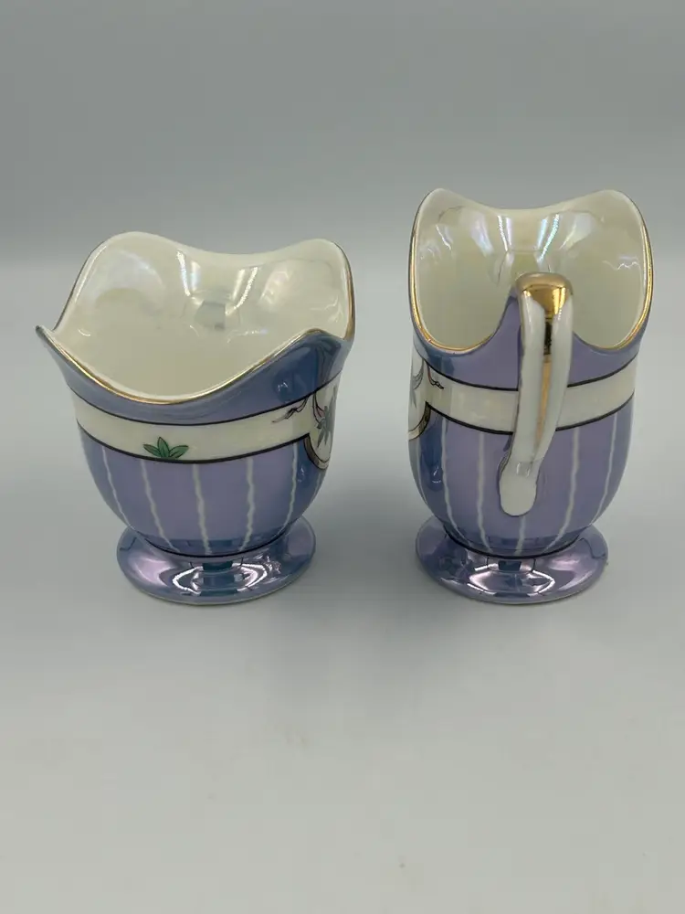 Perfect condition. Creamer – 3.75 H.X 4Lx 2.2 5W. Sugar – 3.25 H.x 4Lx 3W