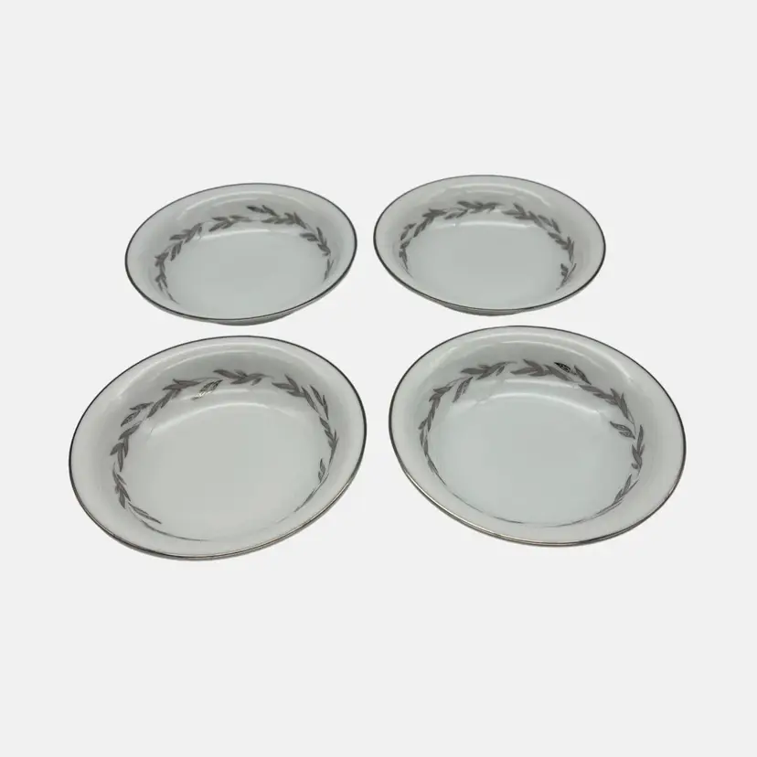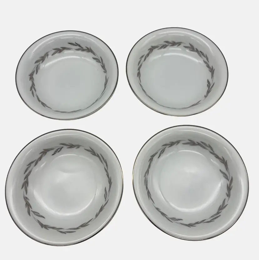 Features: • Type: Fruit / Dessert (Sauce) Bowl • Maker: Noritake • Pattern: Graywood • Pattern Description: Gray & Platinum Leaves with Platinum Trim • Size: 5.5" • Made in Japan • Weight: 5.2oz each • Years Made: 1959 - 1971 • Current Status: Discontinued
