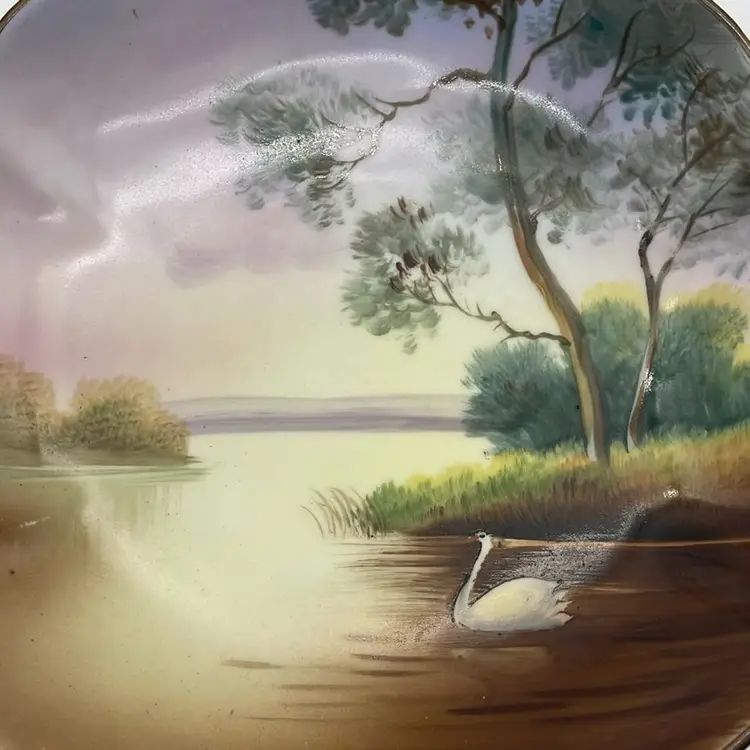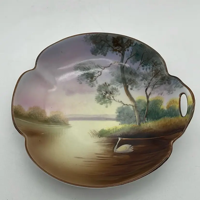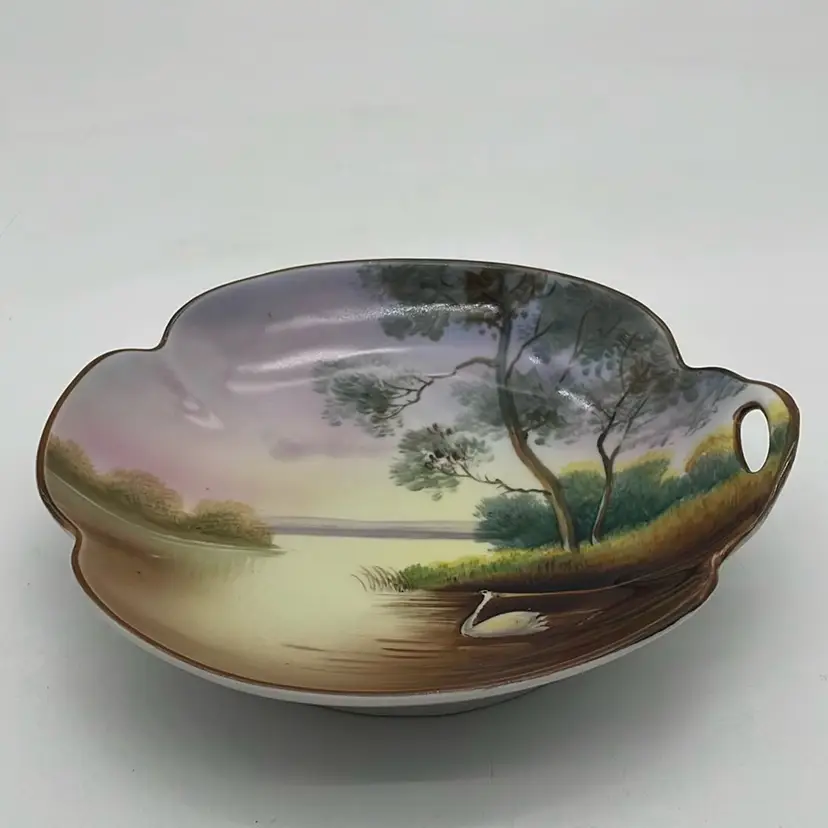 Very good condition. No chips or cracks. Has a very small area of paint loss as shown in photos. Measures approximately 6.5” in diameter and 1.5” depth. Signed Noritake Hand painted Made in Japan. Made prior to 1953.