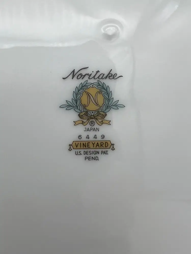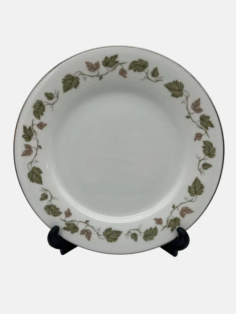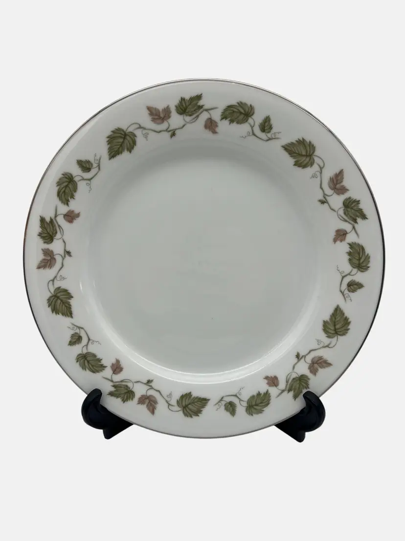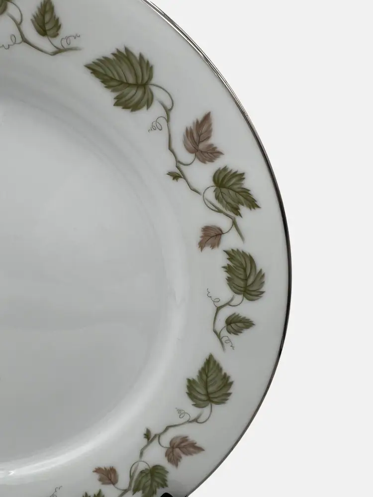 Features: • Type: Dinner Plate • Maker: Noritake • Pattern: Vineyard • Pattern Description: Brown and Green Leaves & Vine, Platinum Trim • Size: 10.5" • Made in Japan • Weight: 1lb 5oz • Years Made: 1963 - 1973 • Current Status: Discontinued