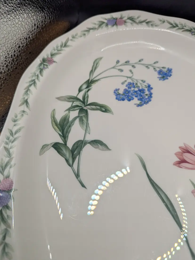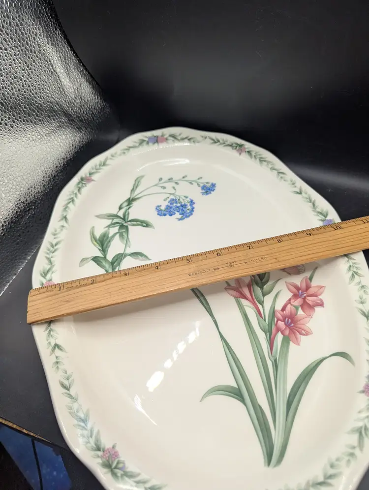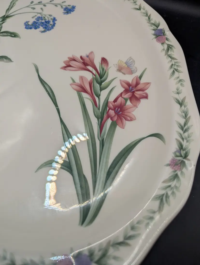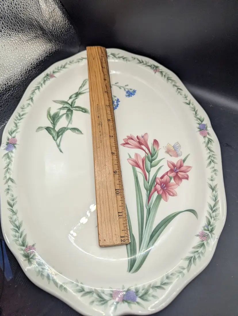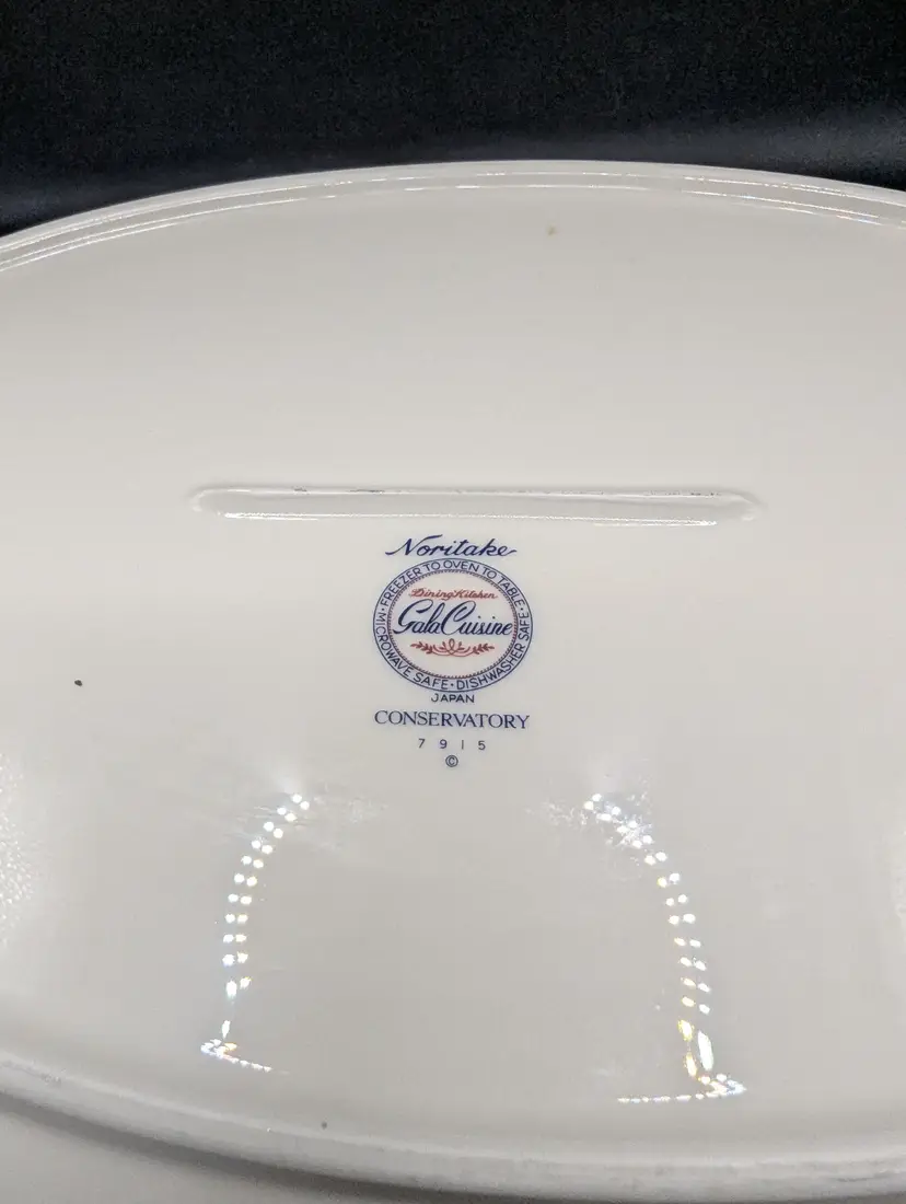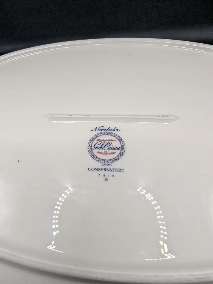 This is a stunning Vintage Noritake Porcelain Conservatory Gala Quisine 14" Oval Serving Platter. It has a beautiful floral design of muted colors with a butterfly accent. No chips or cracks. Please see all pictures for condition and measurements.