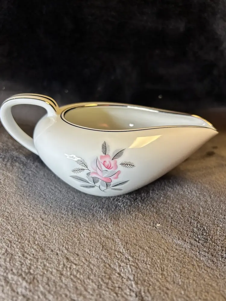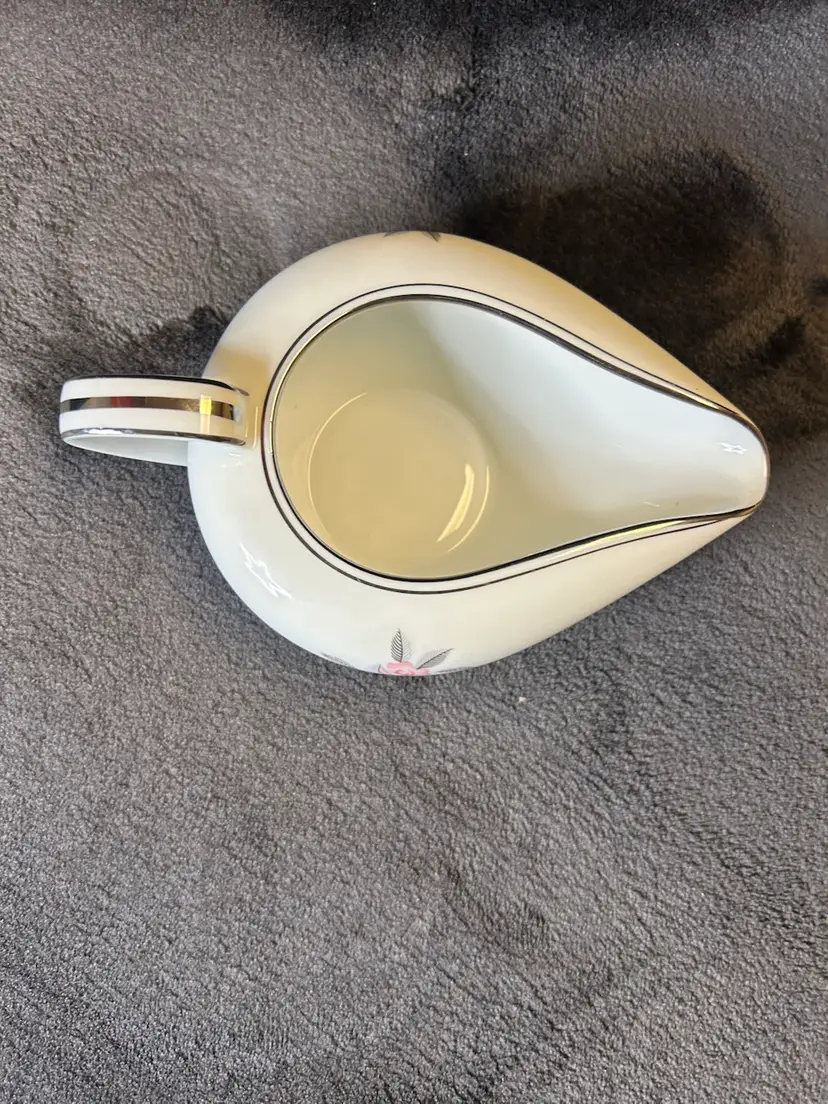 The creamer features platinum trim along the rim and handle.