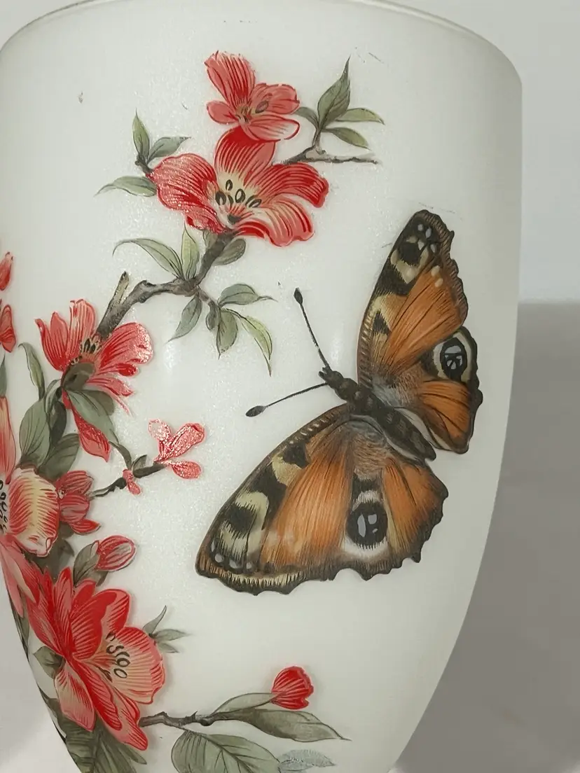 Vintage 1990’s Norleans Butterfly and Flowers Vase, hand painted Made in Italy No conditions no chips Beautiful vase great colors Approx size 9.5x4.5”