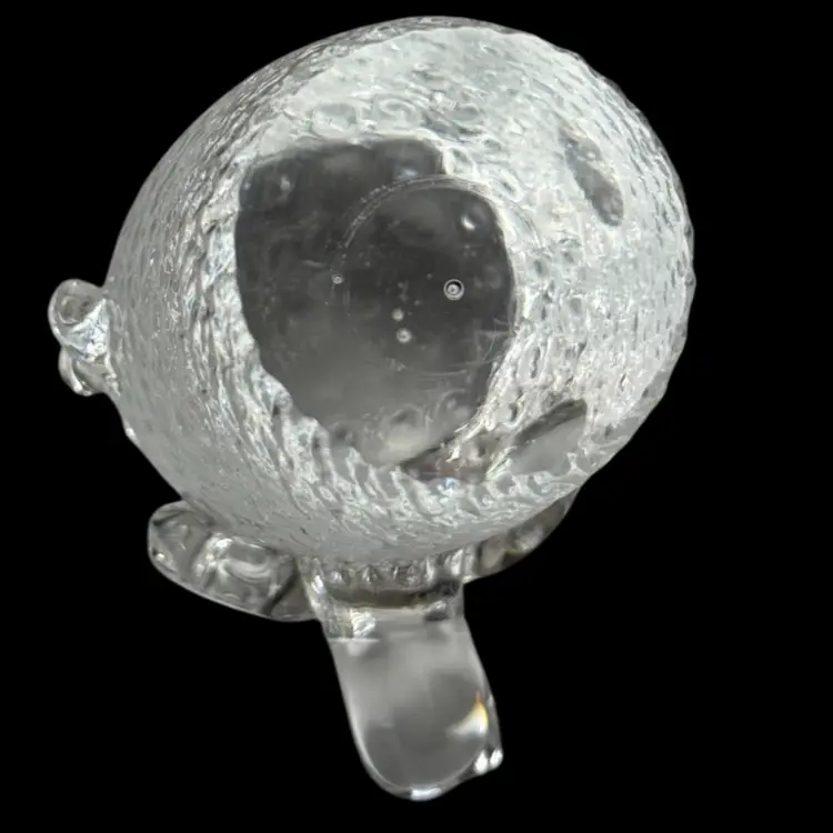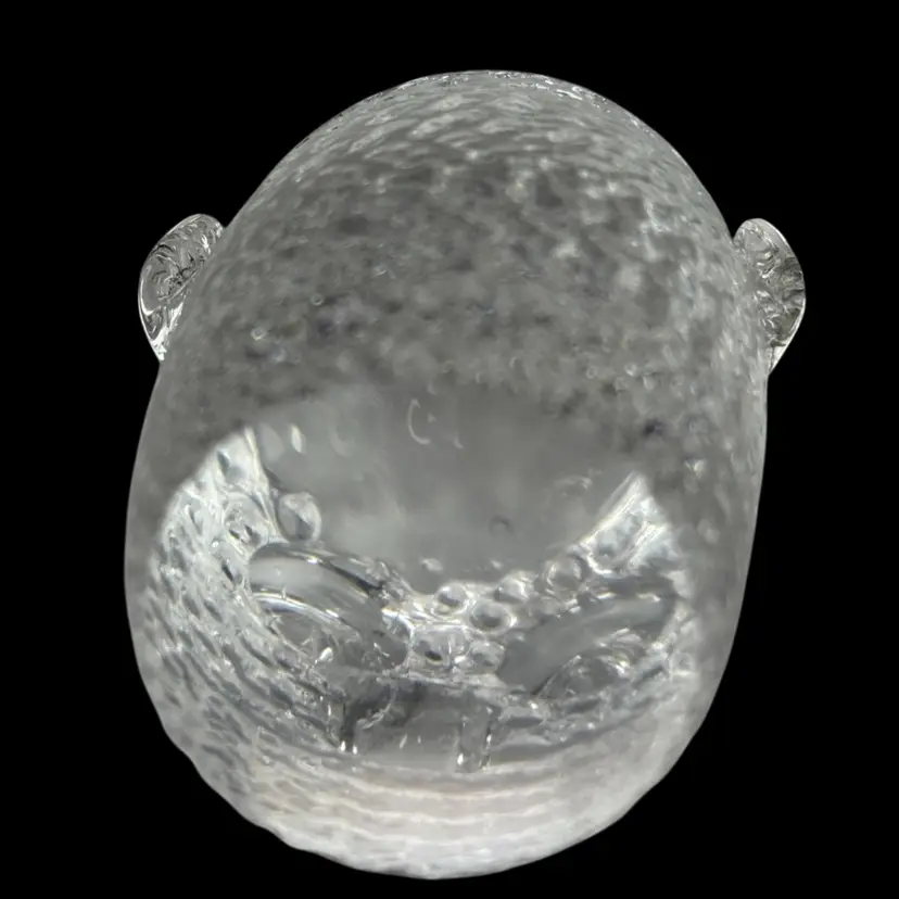 This "Forgetful Troll" is a fun piece. Measures 3" tall with no chips or cracks. 1960s, Designed by Benny Motzfeldt for Hadeland Norway Glassverk. Textured body with applied ears, eyes, and nose.