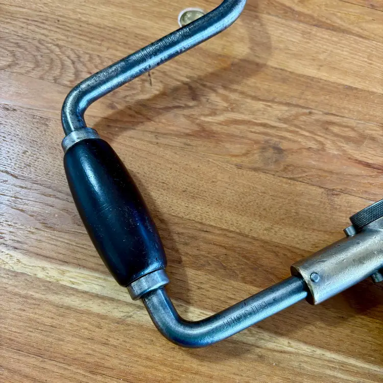 Excellent condition No. 2101 10-Inch Bell System Ratcheting Bit Brace made by North Bros. Manufacturing Co., a Division of Stanley Tools, Philadelphia, PA. This brace has been completely gone through and tuned up to make sure it is in perfect working order. The jaws tighten securely and ratchet smoothly in both directions as expected. Gorgeous handles and patent dates in several locations. 10 Inch Sweep. The brace has some minor signs of cosmetic wear, but no functional issues and will be ready to work right out of the box.