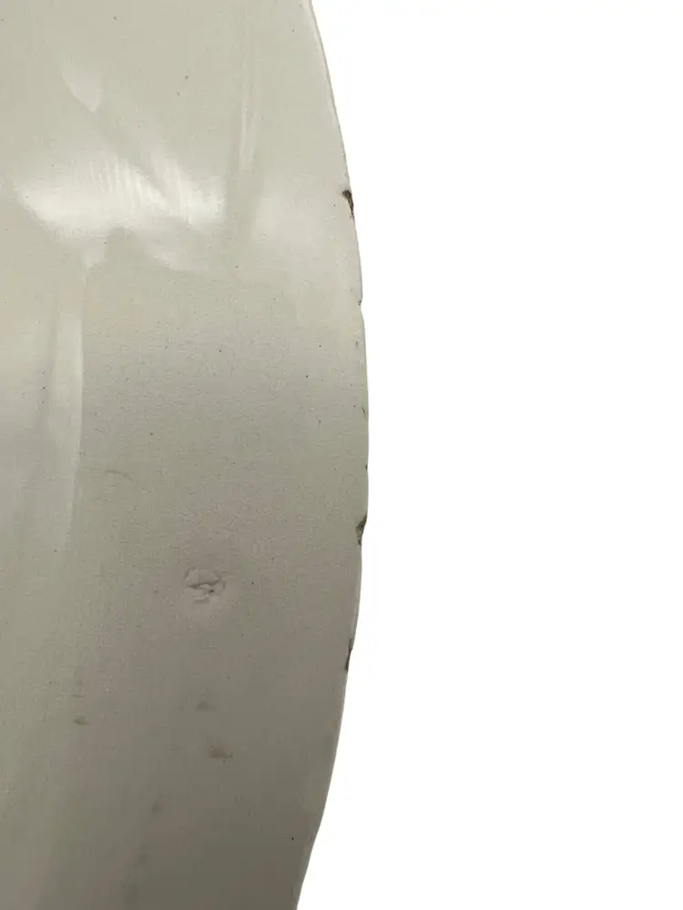 Some minor wear to design. A few small chips / rough spots in one spot along the underside of the rim. Note that plate stand is not included. See pictures for further details on condition.