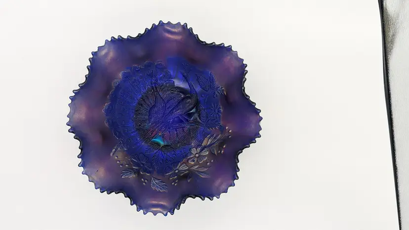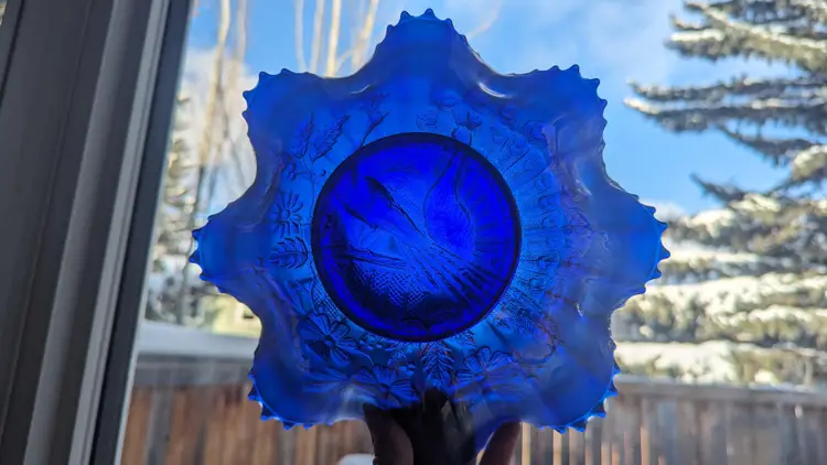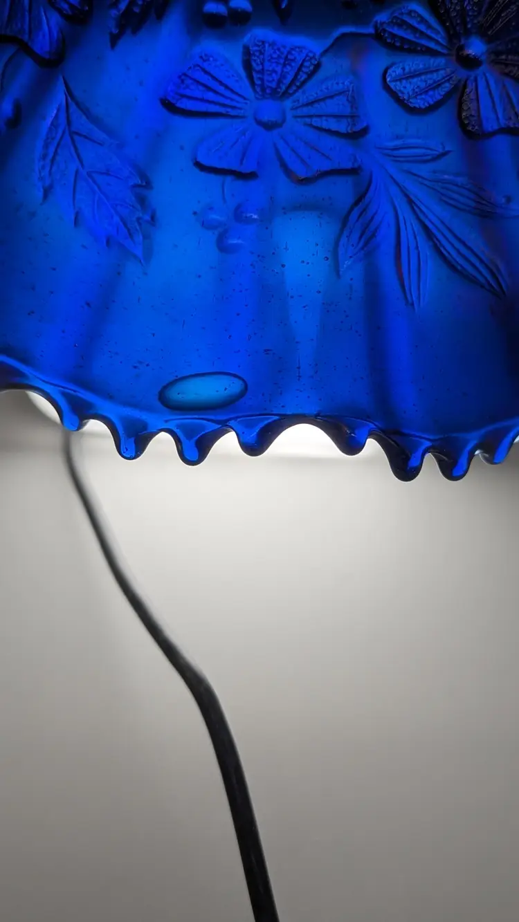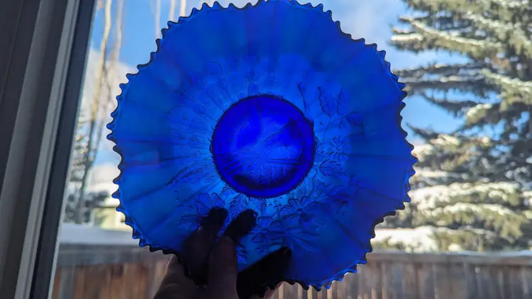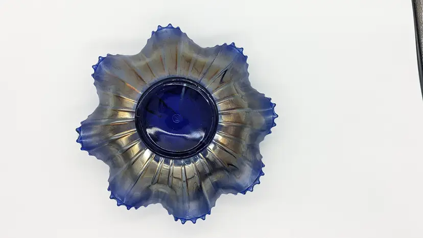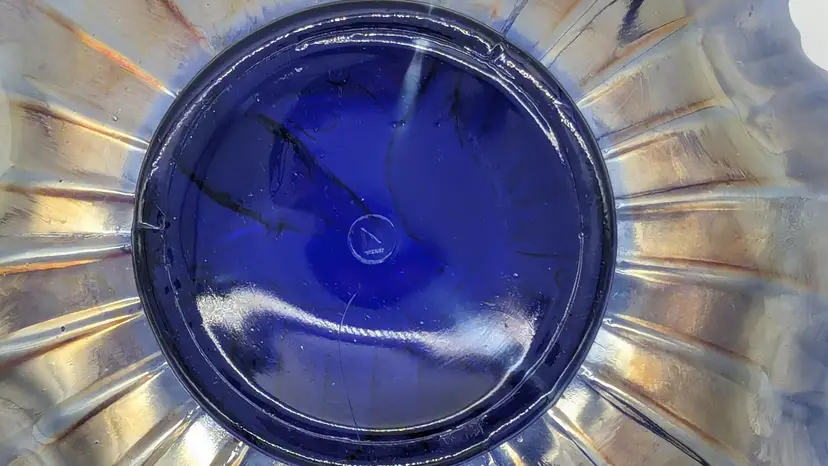 • Very nice iridescence • See pictures to see one big-ish air bubble from manufacturing • Stunning blue with back lighting