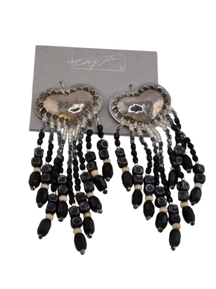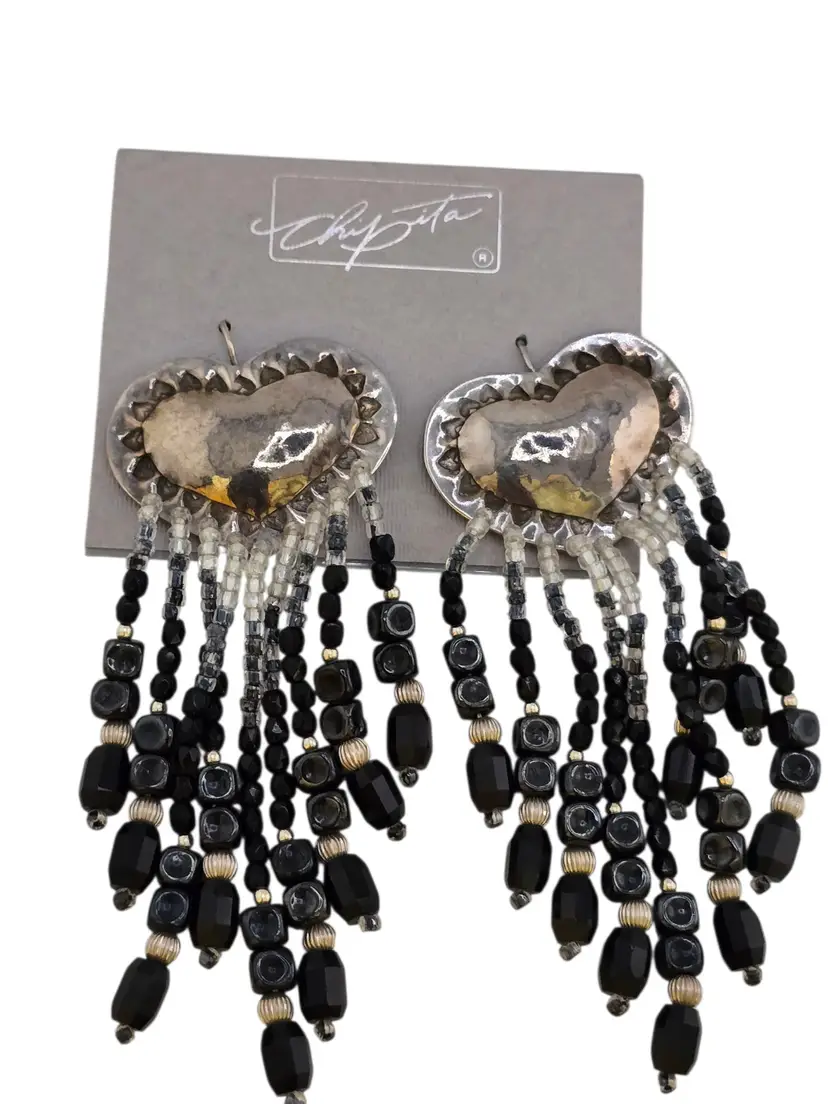 Vintage NOS Chipita Heart Crystal Pierced Earrings On Original Card (A9091)
