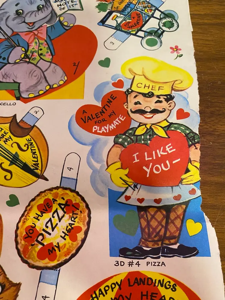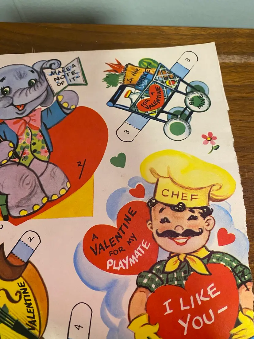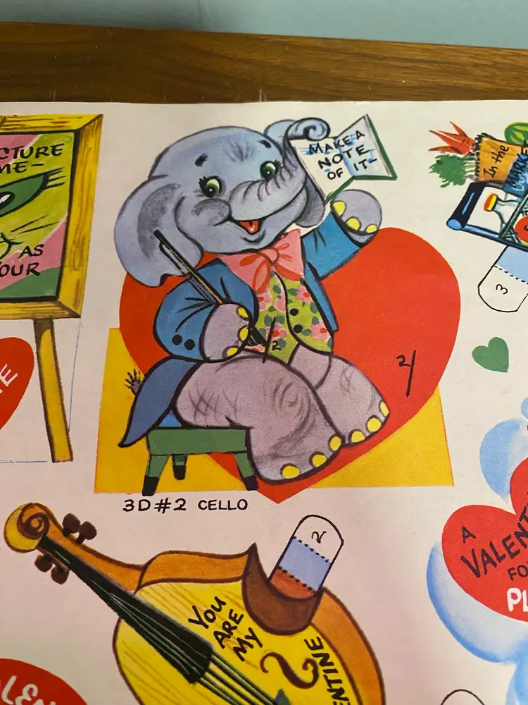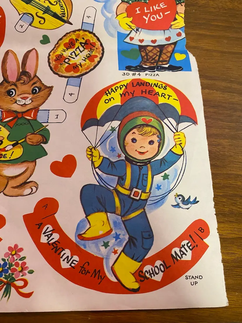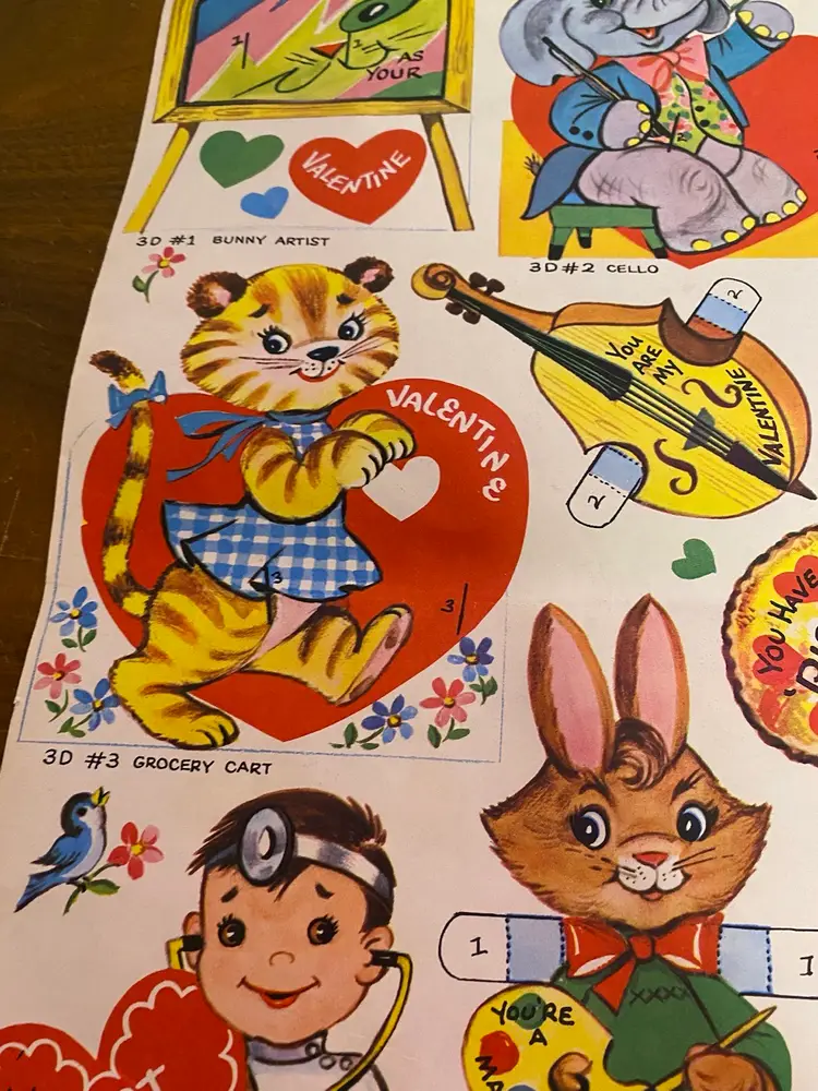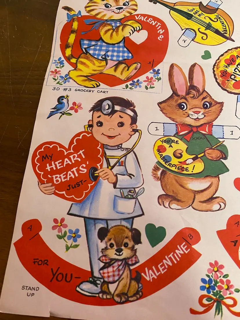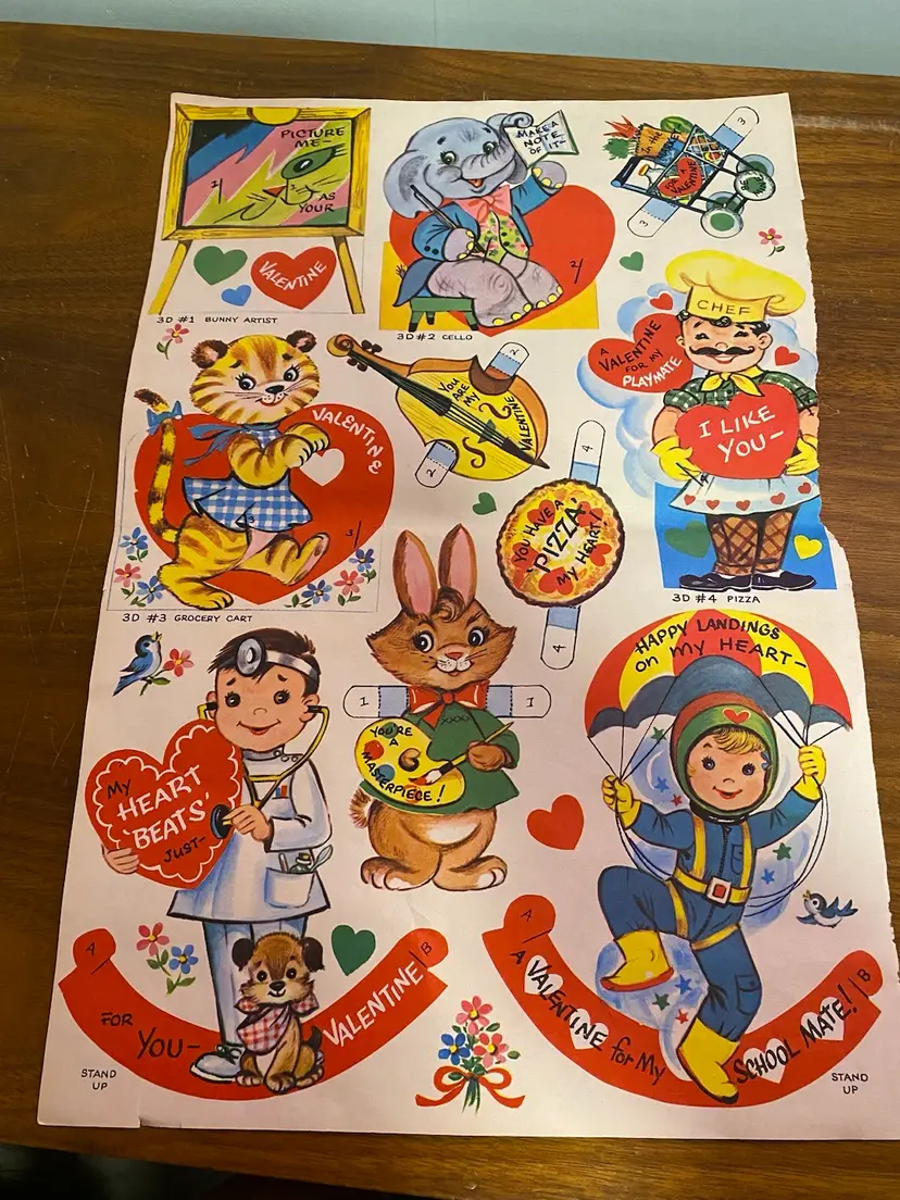 Vintage NOS Sheet Of Valentines Glitter Kitschy Doctor Parachute Animals Tiger