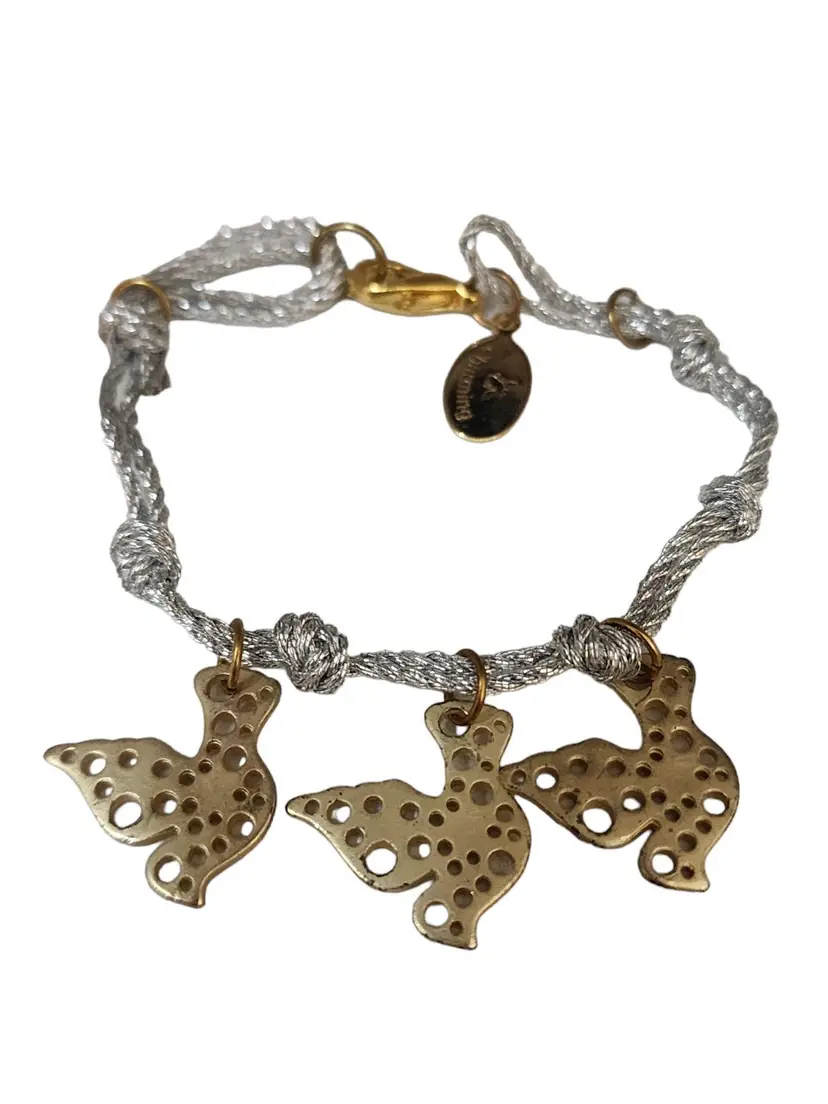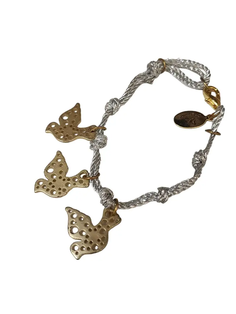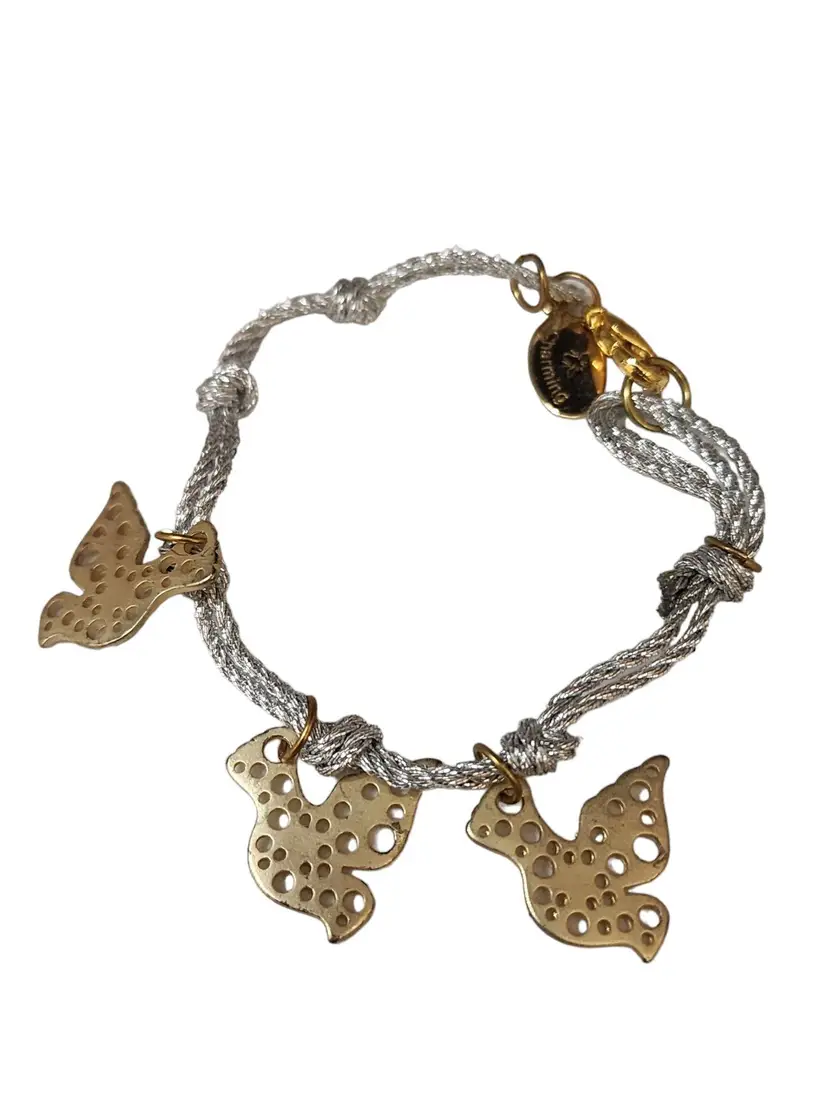 Vintage NOS Signed Bee Charming Silk Cord Dove Charm Friendship Bracelet (A4397)