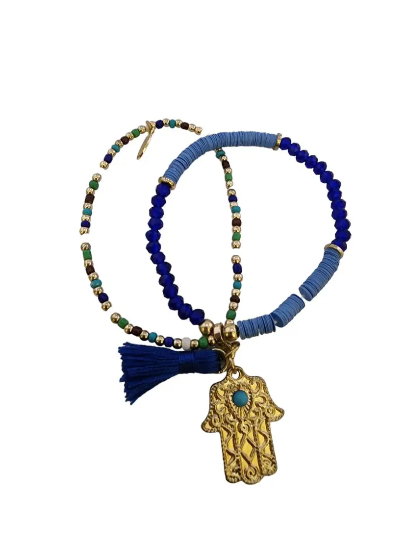 Size: Adjustable Color: Blue, gold Condition: Very good vintage Era: Circa 2000s Signed: Sugar NY Details: New old stock - on the small side, all beads are there; the camera did some weird thing!