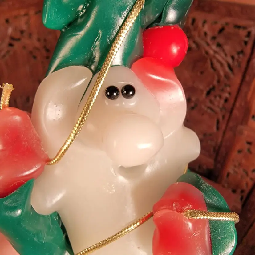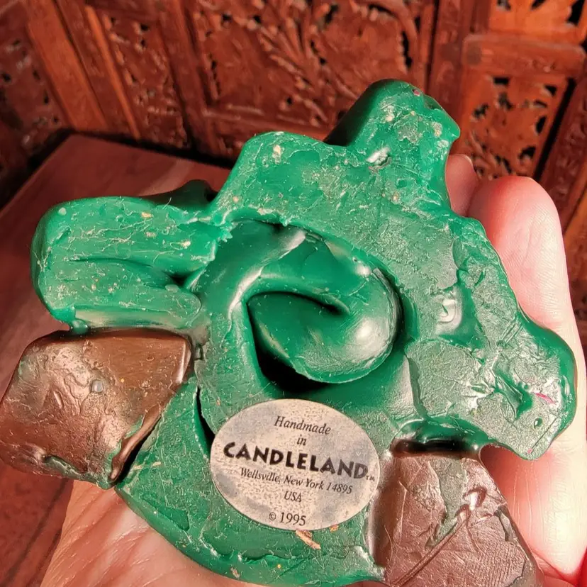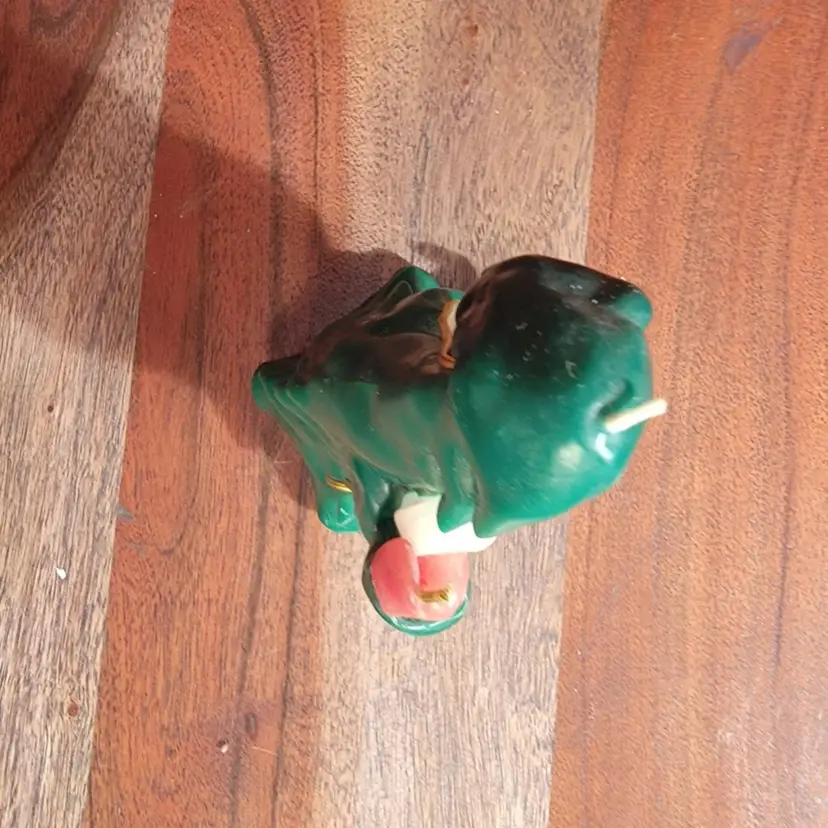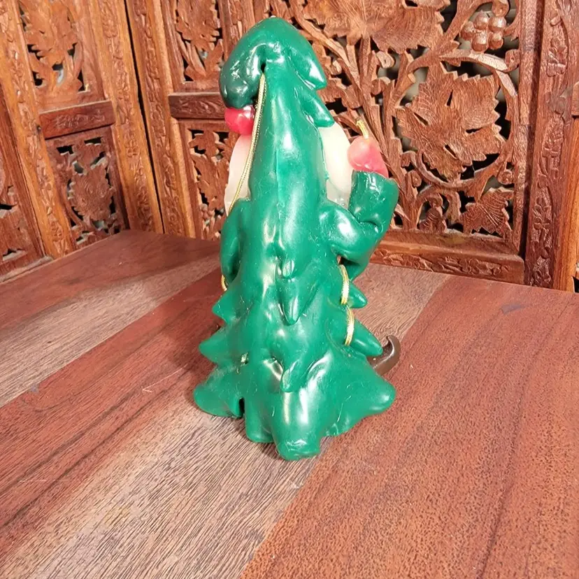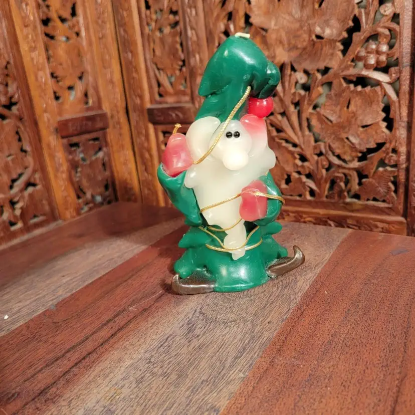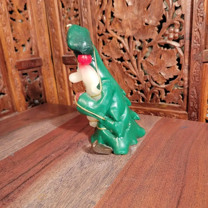 Bring a little whimsy magic to your holiday season with this vintage candle. Green Christmas tree form with a little gnome, elf, wizard peaking out. Northern Lights candles. Fantasy candle, unused. In good vintage condition, no breaks. There is a little bit of surface scratching and a little bit of dust. Easily cleaned with soapy water. Please see photos for details and condition.