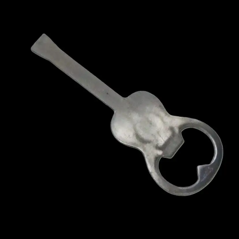 Made of silver colored metal 5 5/8 long 1 5/8 wide at bottom, the widest part Name on bottom but hard to read Very clean, no rust